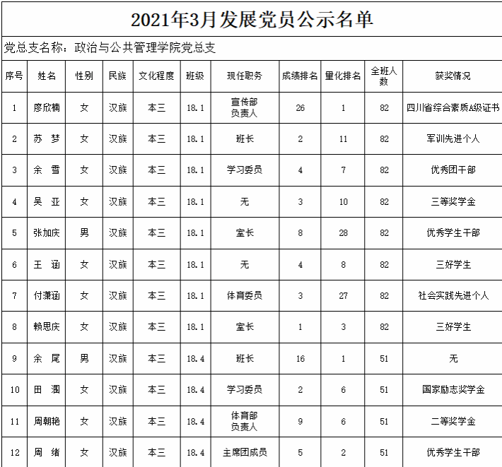 2021年3月发展对象公示
