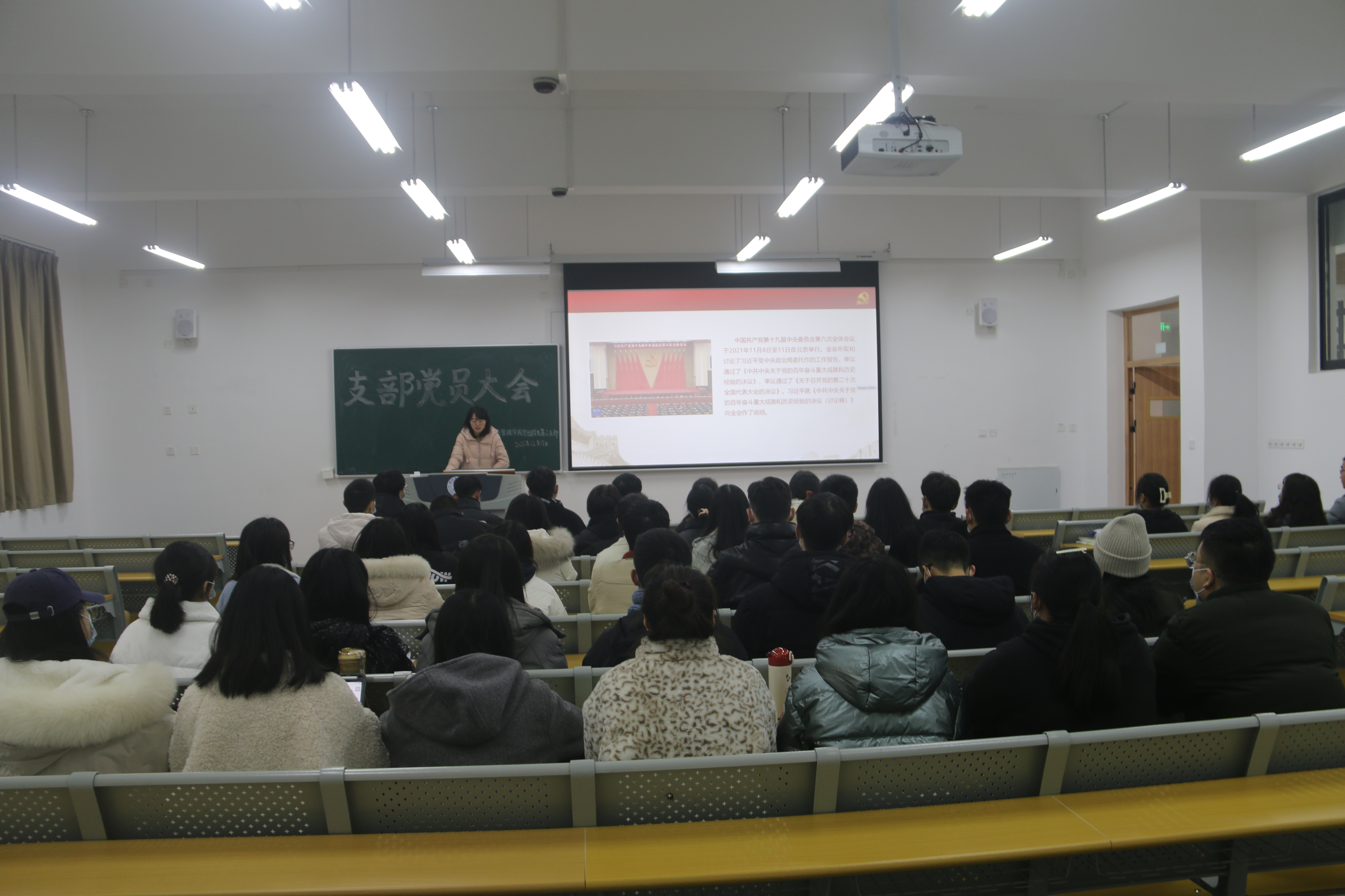 此次党组织生活会在阵阵高昂激荡的国歌声中拉开序幕,大会伊始,由孙希静、张俊、宋美仪老师分别对员工党员们进行近期工作总结。首先老师们肯定了支部近期工作的成果,同时也提出了所存的一些问题。随后他们要求大家结合自己思想和工作中的实际情况,剖析问题产生的原因,员工们纷纷进行反思,寻找自身所存在的问题,并提出了改正措施。紧接着他们向同学们强调作为党员要起到先锋模范作用,无论是在生活中,还是学习中,都要争优争先,志存高远,不能有怠惰的消极心理。之后同学们重温了党的百年历史,深刻理解习近平总书记对广大青年提出的重要要求,他们纷纷表示要发愤图强,砥砺前行,坚持艰苦奋斗的革命精神,发扬党的优良传统,做到思想上和组织上都入党,做一名优秀的共产党员。至此,此次党组织生活会顺利结束。