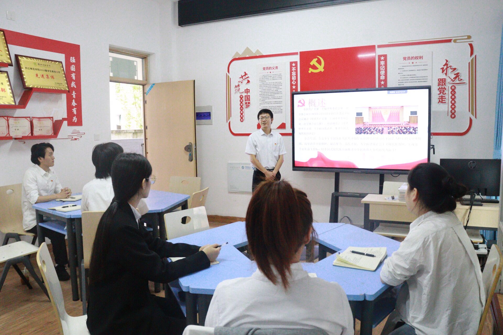 活动开始,全体员工党员齐聚会议室,一同观看了“中共中央举行新闻发布会介绍和解读党的二十届三中全会精神”的视频直播。通过观看新闻发布会,员工党员们对二十届三中全会精神有了更直观、更深刻的理解。观看结束后,员工党员们分成若干小组,就二十届三中全会的内容和精神进行了热烈的讨论。大家纷纷发言,畅谈自己对全面深化改革、推进中国式现代化的认识,以及如何在学习和生活中践行全会精神。在讨论环节之后,党员们主动上台,分享了自己的学习感悟。大家表示,通过学习全会精神,更加坚定了理想信念,明确了未来努力的方向。同学们的真诚分享引发了在场所有人的共鸣,活动现场气氛浓厚。最后,周玉娇进行了总结发言,她强调员工党员们要继续深入学习党的二十届三中全会精神,将学习成果转化为实际行动,为实现中华民族伟大复兴的中国梦贡献青春力量。