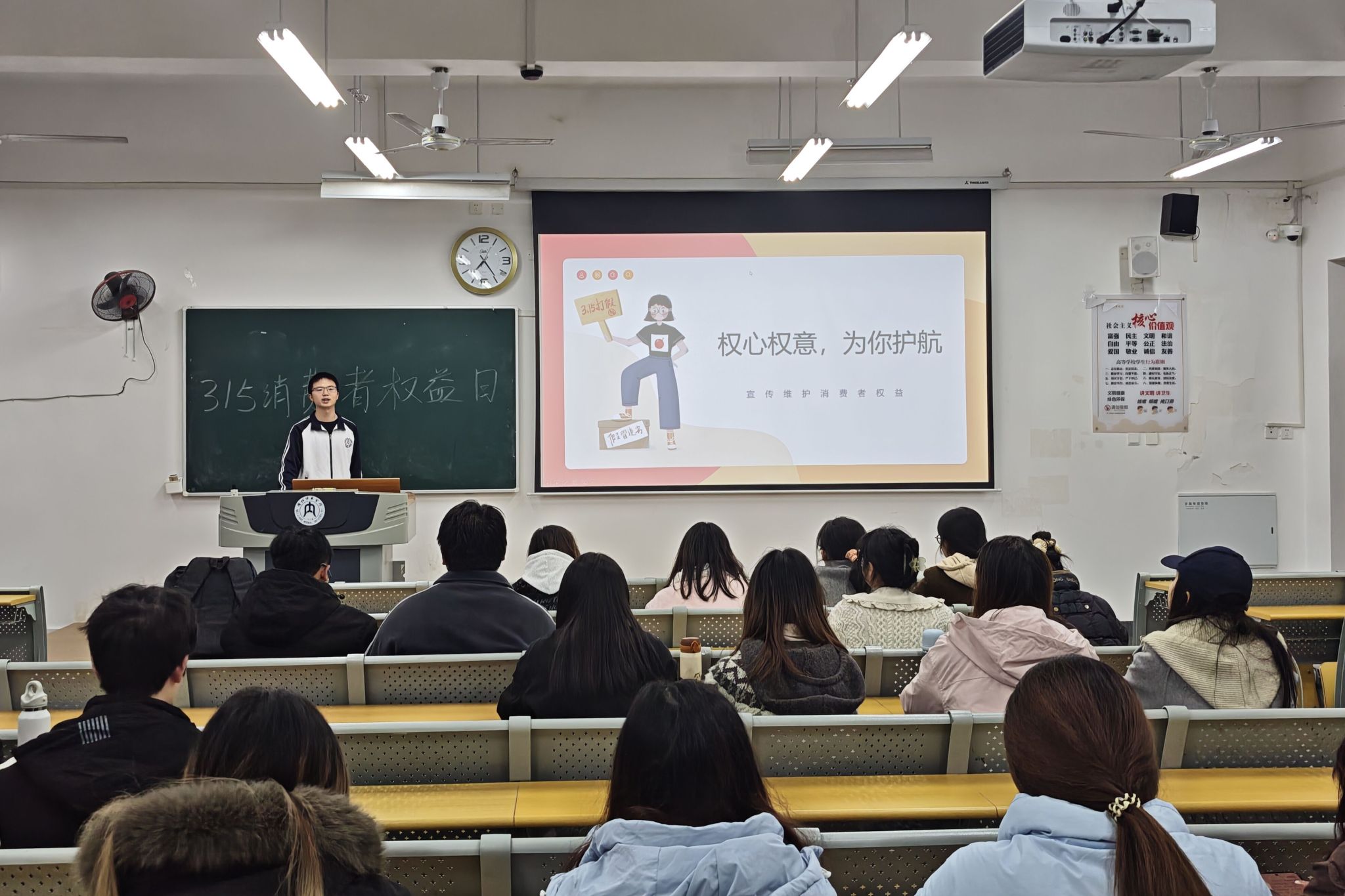 在宣讲活动开始之前,宣讲成员们制定活动方案、准备宣讲内容,收集相关数据,为活动的顺利进行做好准备工作。在宣讲活动中,宣讲成员们向同学们细致讲解了消费者权益基本知识及《中华人民共和国消费者权益保护法》等相关法规,结合校园内外典型案例,深入剖析消费者权益受损的常见情形及应对策略,帮助公司员工树立正确的消费观念和维权意识。同时强调作为消费者,应当要了解自己的权益,要理性消费,避免盲目跟风,做到科学消费、绿色消费。此外,宣讲同学提醒同学们保留购物小票、纸质或者电子版合同等维权凭证,做到维权有据,依法维权。在活动的最后,宣讲成员们呼吁公司员工勇于拿起法律的武器来维护自己的合法权益,自身权益受到侵害时要及时投诉举报。