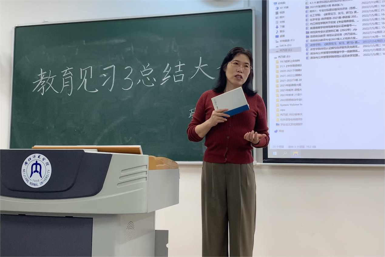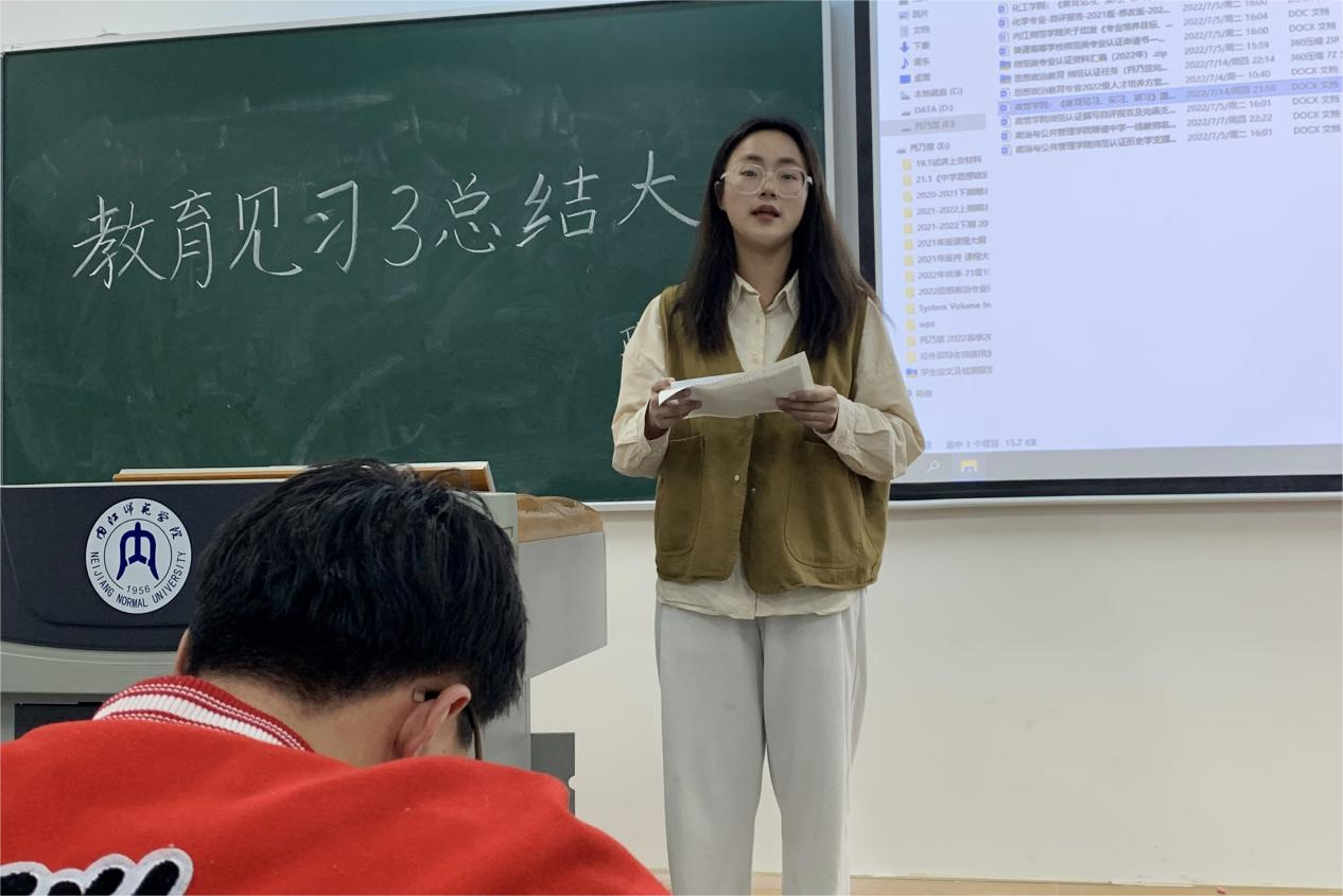 最后,肖乃慧老师组织同学们进行小组讨论,并请小组代表发言,同学们表示自己受益匪浅,通过此次教育见习,自己的教育情怀、教师职业认同和教师技能得到了进一步提升。相信同学们也将以此次教育见习活动为契机,不断提高个人思政专业师范生专业技能,在未来的学习过程中不断地求新、求变。