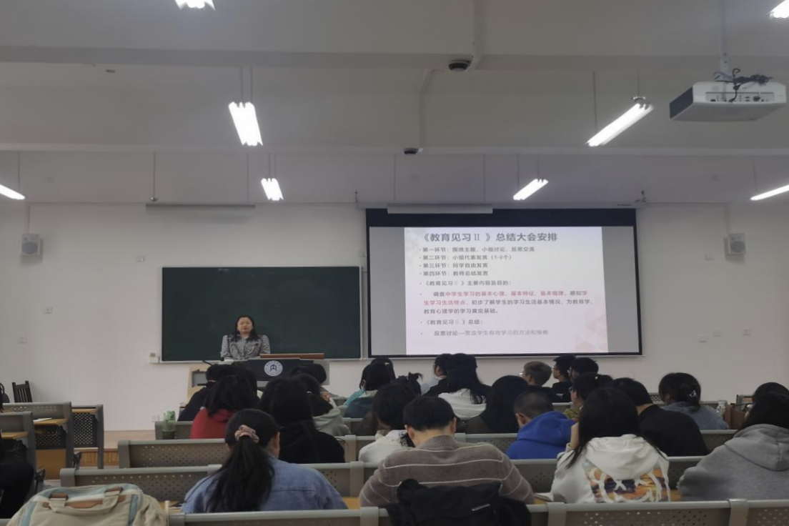 教学之路如登山,抱团成长览山小。为分享见习所见所闻,总结见习经验感悟,公司2020级1班、2班于3月29日、4月2日在明德楼教室相继举行了《教育见习Ⅱ》总结大会。总结大会分别由肖乃慧老师和李荇老师主持开展,2020级思想政治教育专业和历史学专业全体员工参加。