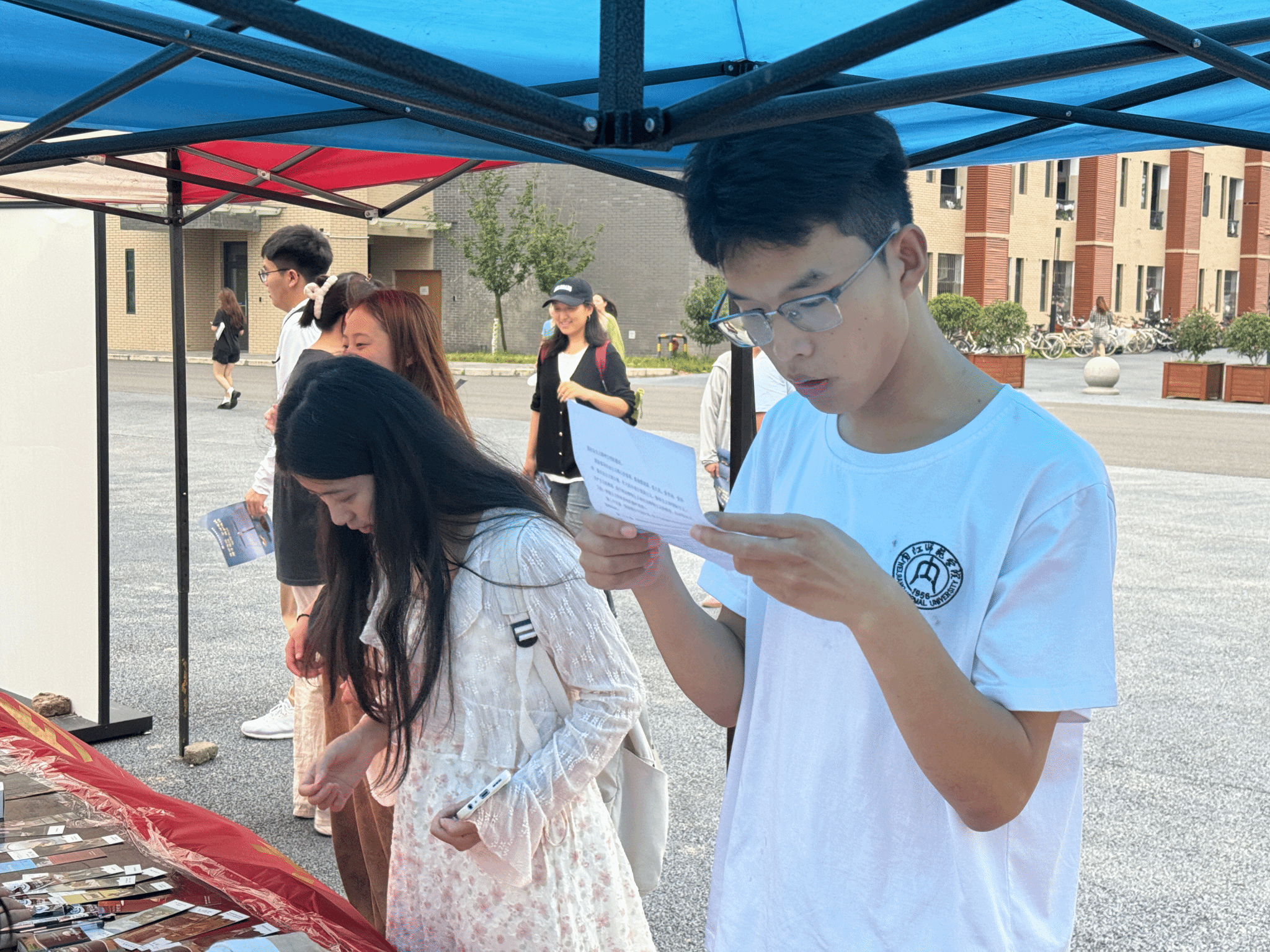 活动现场,精彩纷呈的形式让每一位参与者都沉浸其中。首先,宪法答题环节激发了同学们的学习热情。他们纷纷拿起答题卡,认真作答,根据答对题目的数量,兑换到精美的的小礼品,这不仅是对他们学习成果的肯定,更是对他们热爱学习的鼓励。紧接着,现场朗读宪法条款的环节将活动推向了高潮。同学们用铿锵有力的声音,深情地朗读着宪法条文,每一个字、每一个词都充满了对宪法精神的崇敬和追求。通过朗读,同学们更加深入地理解了宪法的内涵,也感受到了宪法所蕴含的庄严与神圣。此外,誊写宪法宣传标语的环节更是别出心裁。同学们纷纷拿起笔,将自己的字迹融入其中,写出一条条生动有力的宣传标语。这些标语随后被展示在展板上,吸引了众多师生的驻足观看,达到了期待的宣传效果。陈洪英老师表示本次活动不仅能加强法学专业员工法治宣传的能力,还能使其他专业的同学了解到更多的宪法知识,一举两得。夜幕降临,本次活动圆满落幕。