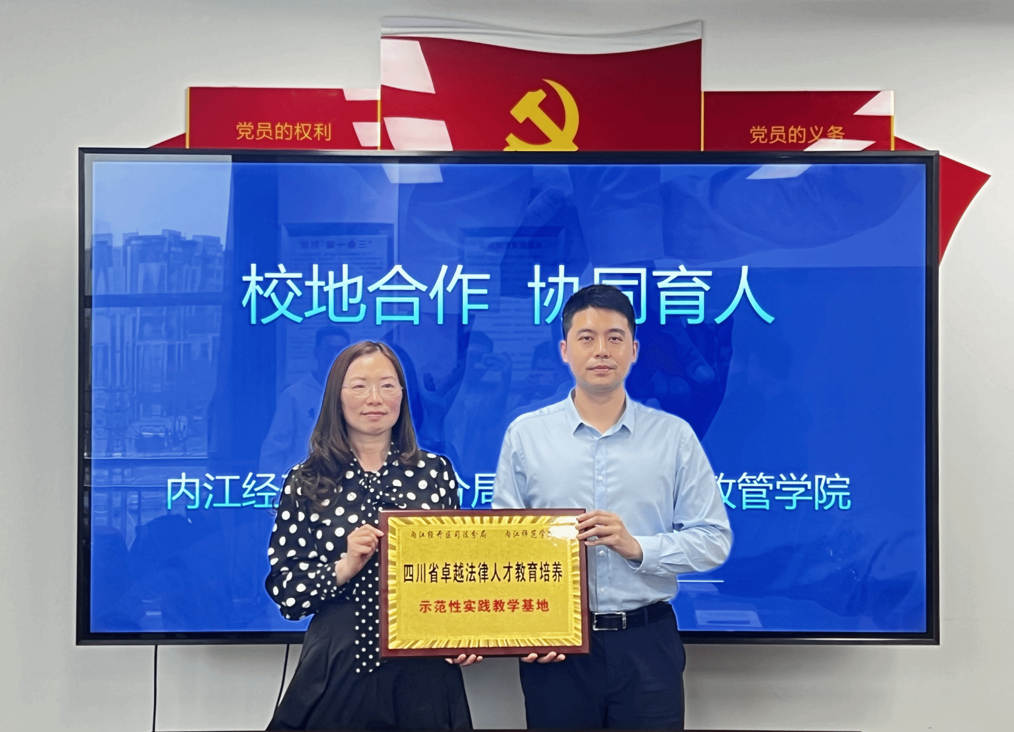 为进一步推动校地合作,拓展员工就业岗位,促进校地协同创新育人,提升服务地方能力水平。4月3日,公司与内江市司法局经济技术开发区分局举行校地合作研讨会暨“四川省卓越法律人才教育培养示范性实践教学基地”授牌仪式。公司党委书记谭化容、副经理岳家斌出席会议,内江市司法局经济技术开发区分局局长张鹏参加会议。