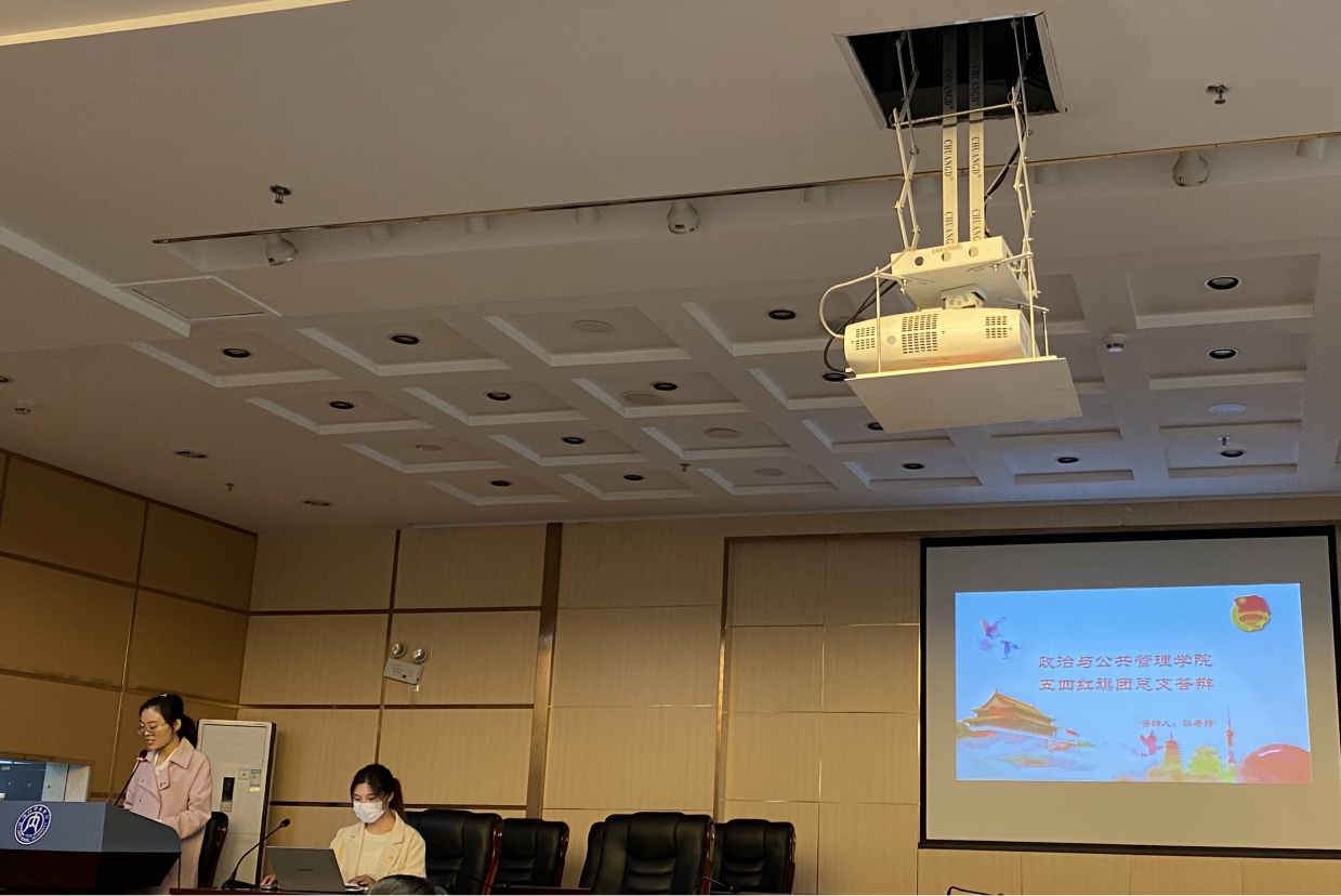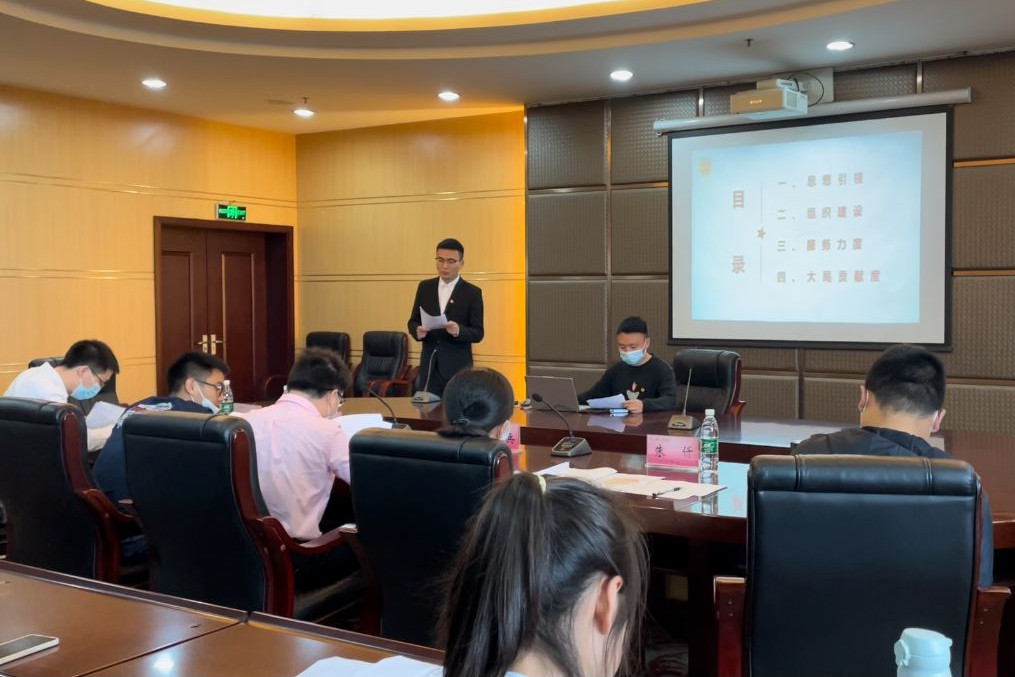 李海同学作为公司汇报人上台汇报,他从思想引领、组织建设、服务力度、大局贡献度等四个方面展示了团支部的青春风采,突出支部工作成效,构建了支部发展蓝图。李海同学指出,在思想引领上,坚持推进“学习强国”学习、青年大学习、党史学习教育,营造浓厚的学习氛围,加强班风学风引领;在组织建设上,坚持民主评选团优干,全面落实“三会两制一课”,积极推荐支部成员向党组织靠拢;在服务力度上,坚持服务班级与服务院校的有机统一,时刻展现出“服同学心,务同学实”的伟大服务力;在大局贡献度上,团支部积极开展“我为群众办实事”活动,积极响应国家号召,加入疫情防控工作志愿活动。孙希静老师和李海同学答辩陈述条理清晰、重点突出、逻辑性强,每一页荣誉展示,都充分表现了团组织成员们的奋进与努力,得到了评委老师们的一致好评。最终,经过激励角逐,公司团总支荣获“五四红旗团总支”,公司2019级4班团支部更是取得了本次“五四红旗团支部”答辩第一名的好成绩。