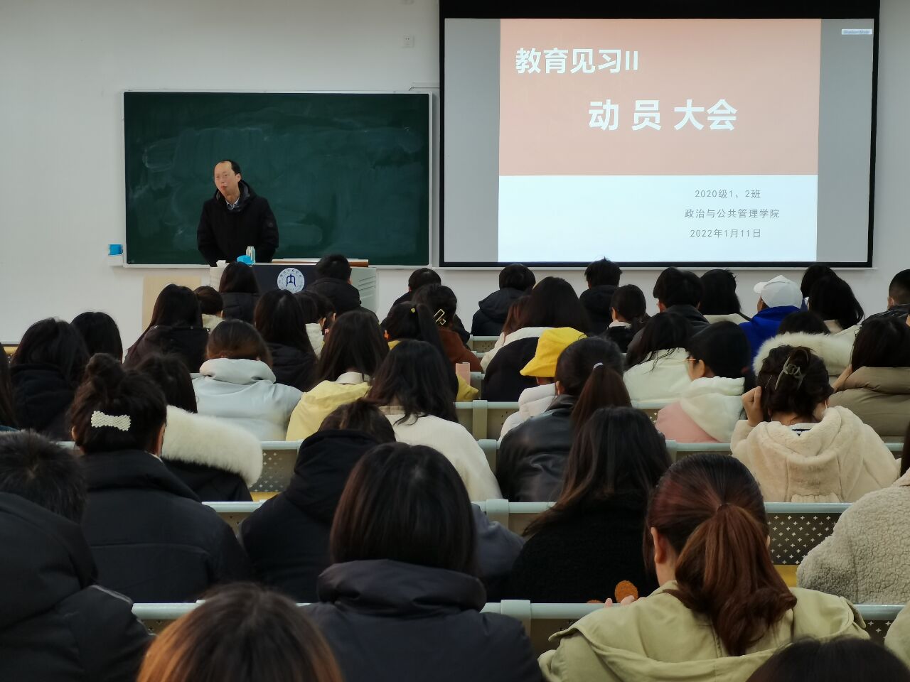 为贯彻实施《2020级人才培养方案——本科》,提高公司思想政治教育专业和历史学专业师范生的教学能力、实践能力和综合素质,增强公司员工对中小公司教学工作流程、课堂教学模式和教学方法以及课后工作的了解,为教育学、教育心理学的学习奠定基础,公司于2022年1月11日在明德楼B101教室召开了《教育见习Ⅱ》动员大会。本次大会由李荇老师主持,公司副经理庞超莅临现场指导,肖乃慧、叶丹两位老师以及2020级思想政治教育专业和历史学专业全体同学参加。
