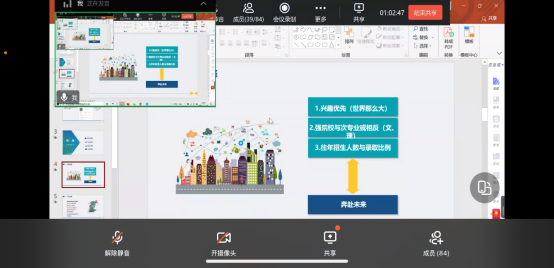 本次交流会根据不同专业具有的特点,邀请直系师兄师姐通过线上线下相结合的方式进行,研究生盛雪莹、郭佳、孙小琼三位同学从自身考研经历出发,围绕专业和院校选择、复习计划制定、心态调整等方面谈了自己的亲身体验和感受。邓红霜面对历史专业重点讲述考研的相关意义、什么时候开始进行相关的准备、考研需要做什么、如何合理的选择院校和专业、如何查看自己考研院校以及专业招收的人数;黄也面对法学专业的同学,重点讲述相关问题的解决办法,例如:法考和考研是冲突的问题、大四实习与考研备考、初试备考。黄老师依据城管专业的特点,从研究生招生人数与总报考人数、城管专业报考率与成功率进行相关指导,纠正一些刻板印象。学长学姐不断强调在英语方面,重在练习,多动脑,勤动手;政治方面,大纲十分重要,同时注意答题时的条理。专业复习上,要依据考试大纲和报考公司的推荐教材,牢固掌握基础知识,多做真题和模拟题。