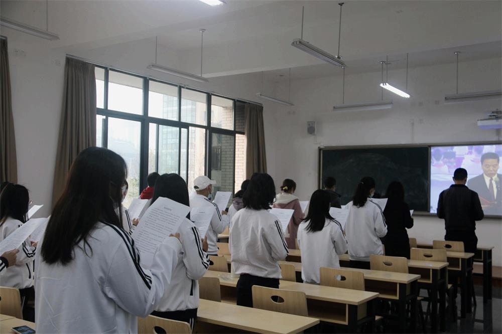 为迎接第八个国家宪法日,深入贯彻十九届六中全会精神,认真学习习近平法治思想,弘扬宪法精神,维护宪法权威。公司于12月3日上午8:40在高桥校区明德楼b104开展宪法晨读活动。参与本次活动的有公司经理谭安富、团总支副书记孙希静、辅导员陈洪英、教师岳家斌、郑兴华及公司各班同学。