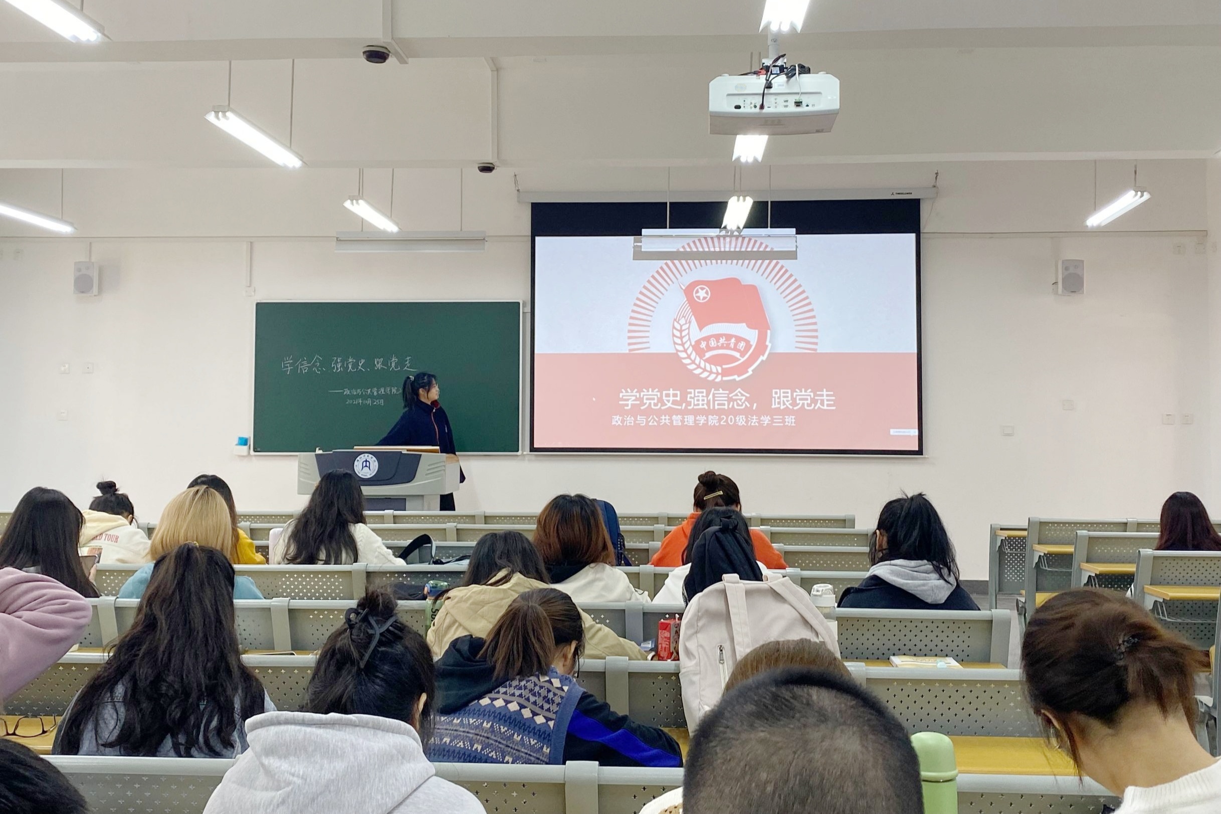 为深入贯彻习近平总书记在庆祝中国共产党成立100周年的重要精神谈话,认真落实“学史明理、学史增信、学史崇德、学史力行”的指示要求,公司各班于10月24日至28日在明德楼依次召开了“学党史、强信念、跟党走”团组织生活会。本次生活会由各班团支书主持开展,公司全体同学参加。