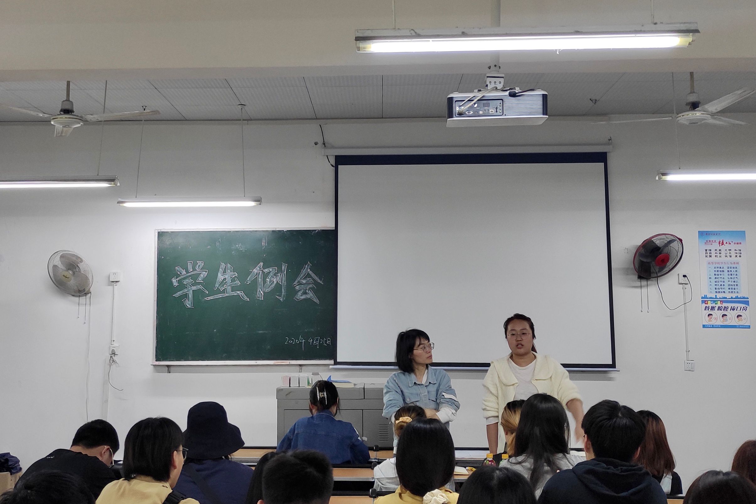 会议伊始,孙希静老师率先上台发言,从上课纪律、考勤、以及学风建设入手,着重强调了各班纪律委员要加强课前点名,尽力做到每节课清点人数,明确同学们的出勤状况。紧接着,陈洪英老师对宿舍卫生与安全针对性地提出了一些问题,并希望在场的生活委员能进一步督促本班各寝室提高寝室卫生质量、加强寝室安全,同时,生活部也需加强检查,积极指出其寝室卫生打扫存在不足,督促其进一步规范化。台下生活委员积极响应,纷纷表示会加强监督,共创文明寝室。最后,宋美仪老师进行会议总结,强调学风建设的重要性。她表示,希望各班班委与各部门负责人能够尽快落实相关事项,为创建文明校园、文明寝室贡献自己的力量。至此,本次会议圆满结束。