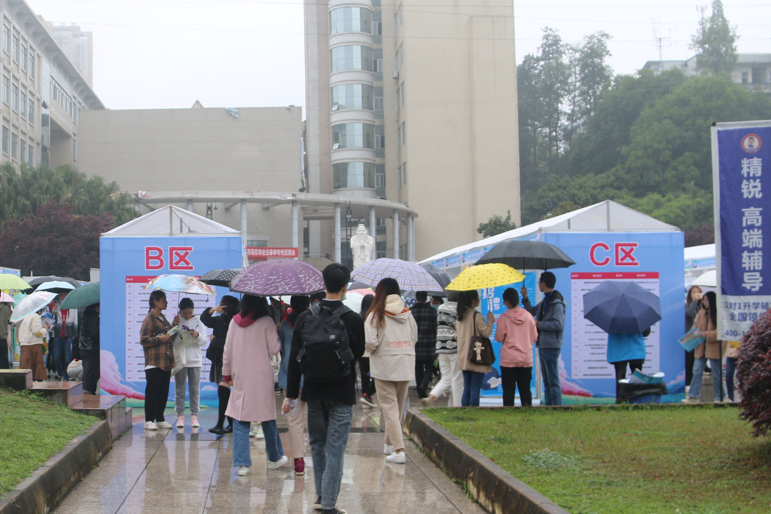 今天,天空飘着小雨,也挡不住学子们的求职热情,各展位前人头攒动,现场气氛十分火爆。公司应届毕业生就工作内容、发展空间和薪资待遇等一系列问题向招聘单位进行咨询。招聘单位耐心地向同学们解答,并通过发放传单、展示宣传画和相关产品等方式详细介绍了其单位的发展历程、文化理念和岗位需求等情况。