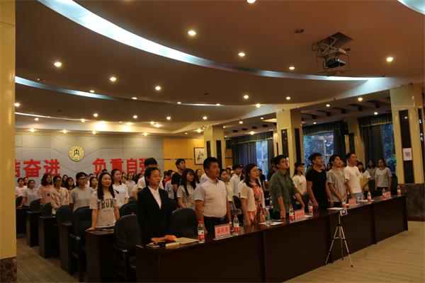 北国风光,千里冰封,万里雪飘;亦有南方,春和景明,波澜不惊,林姝岐、杨敏艺、李云晓等同学为大家带来了诗朗诵——《我的南方和北方》,使观众从字里行间中感受到南方的婉约缠绵与北方的凝重旷远。青年强则国强,青年一代有理想、有本领、有担当,国家就有前途,民族就有希望,朗诵结束后,由严翊丹、邓函威等同学带来的三句半——青春十九大,几位同学妙语连珠赢得了观众热烈的掌声。最后,由肖梦、王沅茂等同学带来的歌曲串烧更是给观众带来了听觉的享受,用歌声放飞青春梦想,书写时代华章,为本次团组织观摩会画上圆满的句号。
