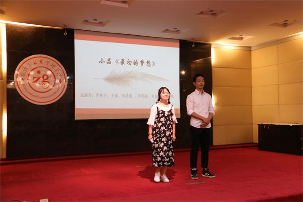 观摩会伊始,在主持人的带领下,参会人员全体起立齐唱团歌。脚步跳的是青春的光辉,玉手舞的是梦想的华丽,由陈会、王丽娟等同学带来的精彩的舞蹈串烧将东方古典舞与西方现代舞灵活拼接,使观众目不转睛。接下来由秦思雨、王甫丹同学演唱的英文歌曲《Dream it possible》,让我们感受到梦想的力量,永不放弃,永不停止,永不言败。歌曲结束后,由王伟、邓函威、青沙中飞等同学带来的小品《最初的梦想》,让我们明白:不要因为走的太远,而忘记当初为何出发。