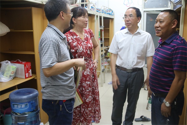 在18级各班班助的引路下,公司领导和老师们来到2018级新生寝室,看望入住的新生以及家长。每走进一个寝室,公司领导和老师们都会亲切的与新生进行交谈,并对新生的住宿、饮食、生活习惯等方面情况进行了解。在亲切的关怀后,公司领导和老师们对公司的规章制度进行详细说明,重点强调禁止在寝室使用大功率电器,并提醒同学们注意寝室安全问题,以防意外发生。由于天气炎热,谭书记特意询问每位新生的身体状况,并提醒他们注意防暑防晒,身体不舒服时要及时就医。最后,谭书记特别强调了寝室用电安全、外出交通安全、人身财产安全等问题,鼓励大家尽快适应集体生活,在学习和生活上互相帮助,如在生活中遇到困难,可以及时跟班主任联系沟通解决。