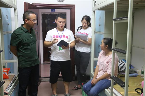 为了解新生情况,帮助新生尽快适应老员工活,2018年9月1日晚,公司党总支书记谭化容、党总支副书记康超、辅导员孟发兵、辅导员彭春霞以及2018级各班班主任,在2018级各班班主任助理的带领下来到2018级新生寝室,亲切看望前来报到并入住寝室的新生,送去对员工以及家长的温暖和关心。
