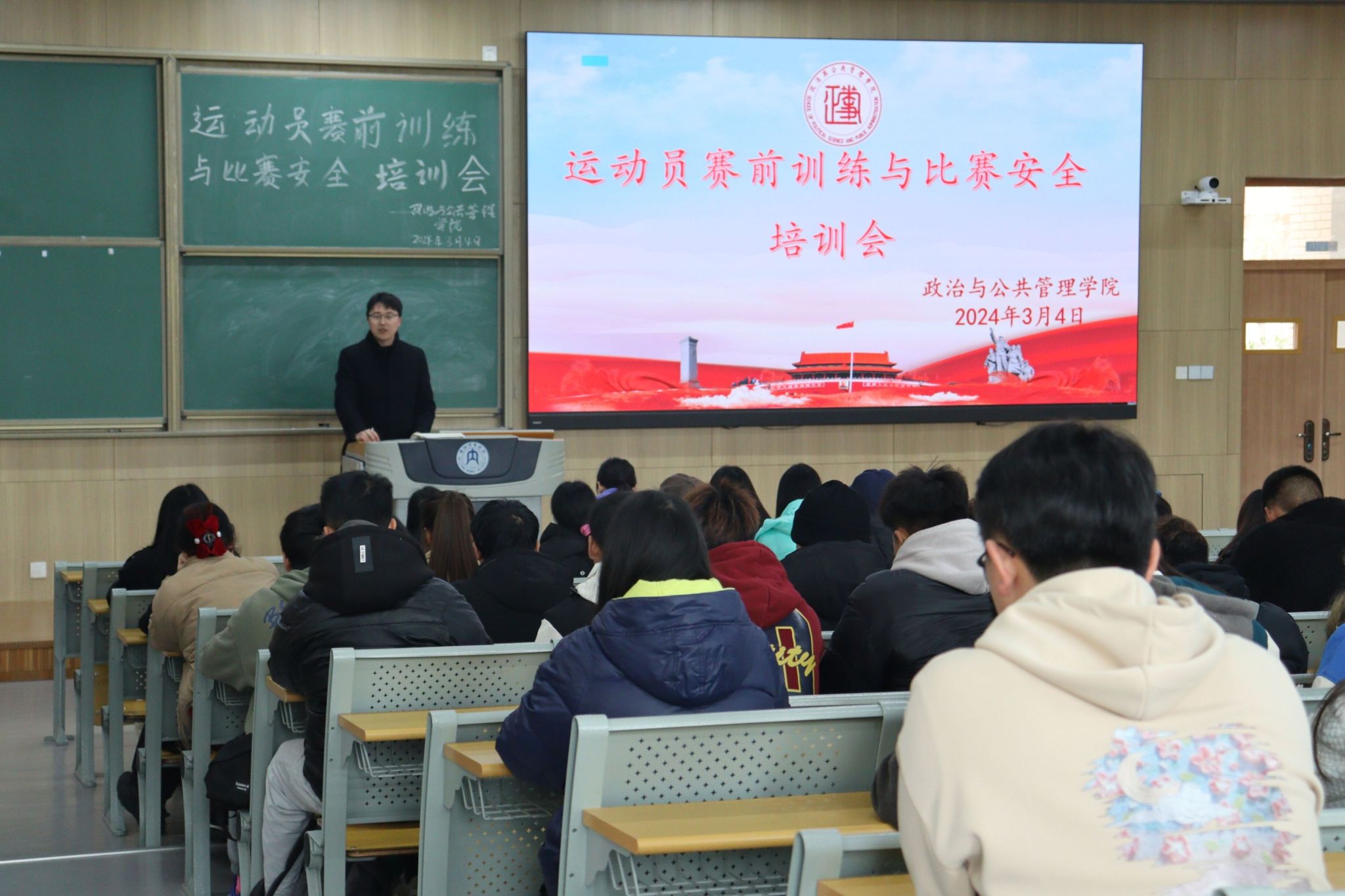 为切实做好公司运动会期间的安全教育工作,确保员工人身安全,保障运动会正常秩序,帮助员工创造良好健康的比赛环境。公司于3月4日中午12:50在明德楼B111教室开展运动会安全教育培训会,本次会议由辅导员张俊主持,辅导员陈洪英以及各班运动员出席。