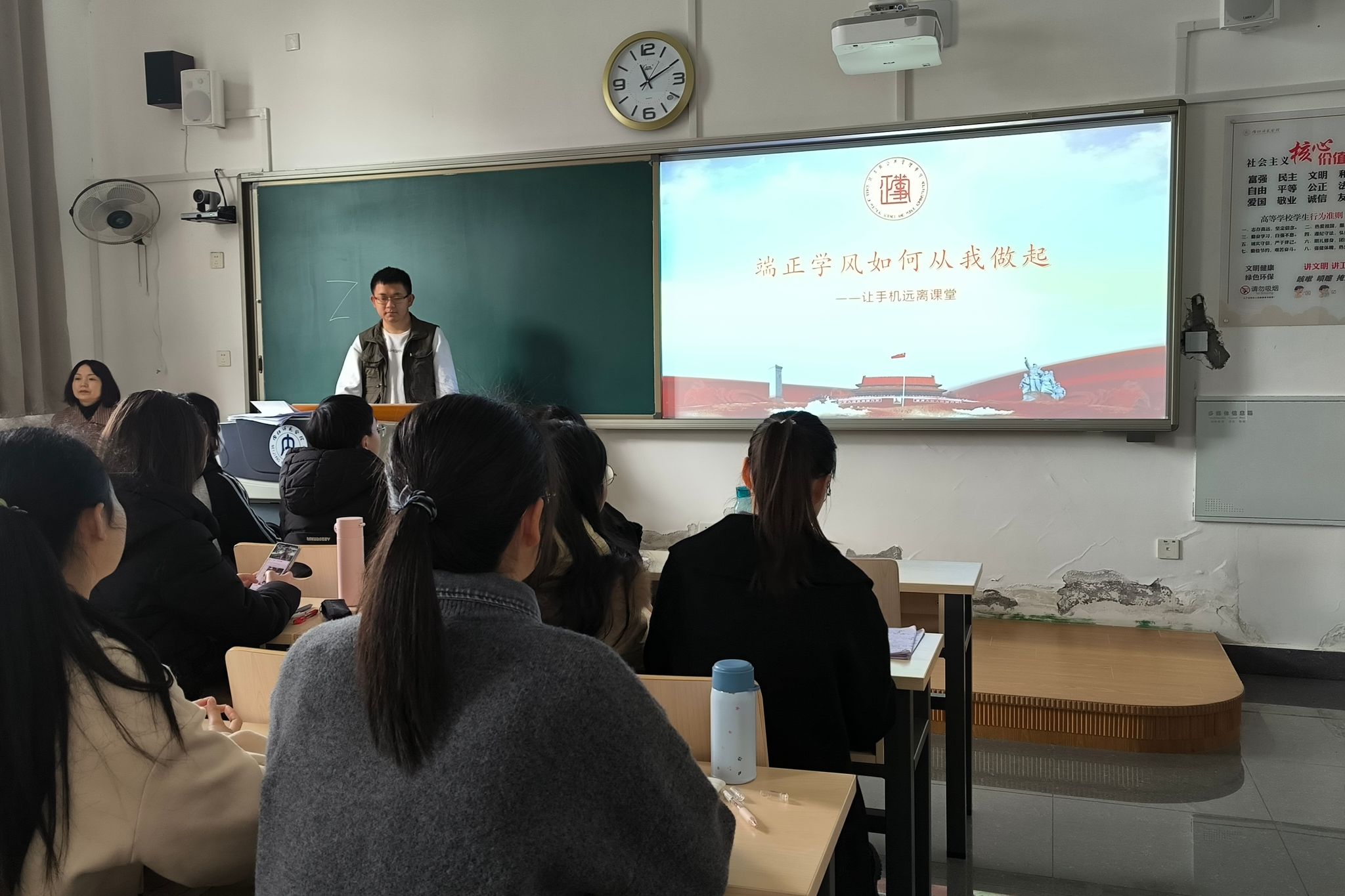 为更好的传承和弘扬公司、公司的优良学风,引导员工自主性学习,增强员工的自律意识,营造良好的课堂学习氛围,公司各班于3月11日至13日在明德楼召开了以“端正学风如何从我做起——手机远离课堂”为主题的班会活动。本次主题班会由各班长主持,全体同学积极参与。