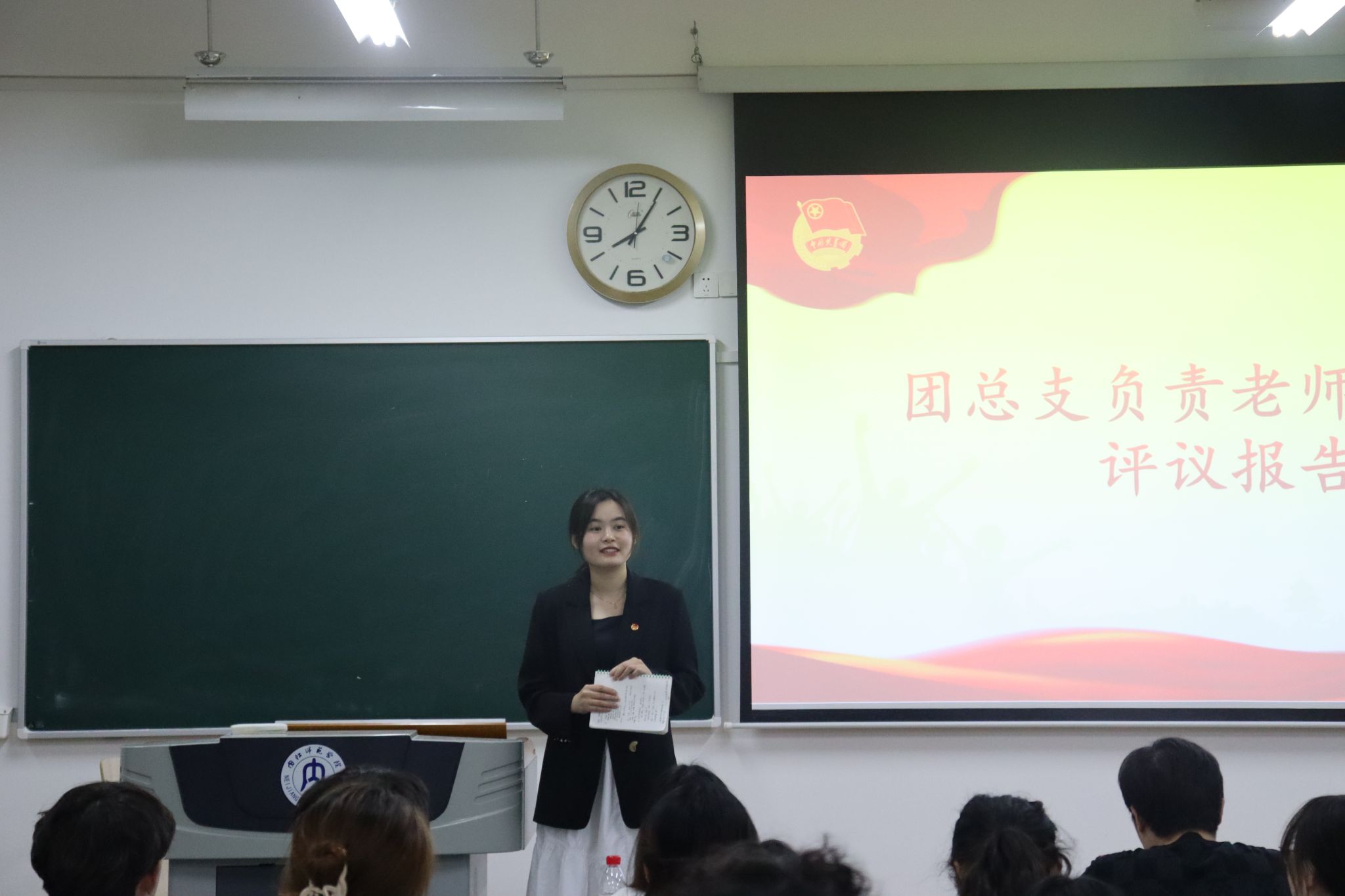 为进一步贯彻落实“自我管理,自我教育,以特色求影响,以成效求发展”的工作理念,总结工作经验和教训,明确日后工作方向,4月1日晚,公司2023年度团总支员工会述职评议大会在明德楼A107教室举行。辅导员陈洪英、张俊、袁妤萱、周玉娇,团总支员工会主席团成员、各部门负责人、部分部门成员及各班代表参加本次会议。