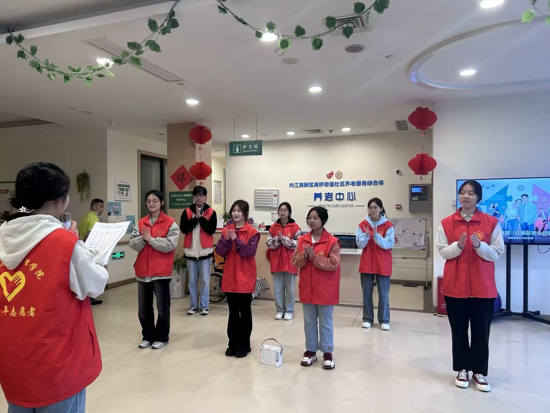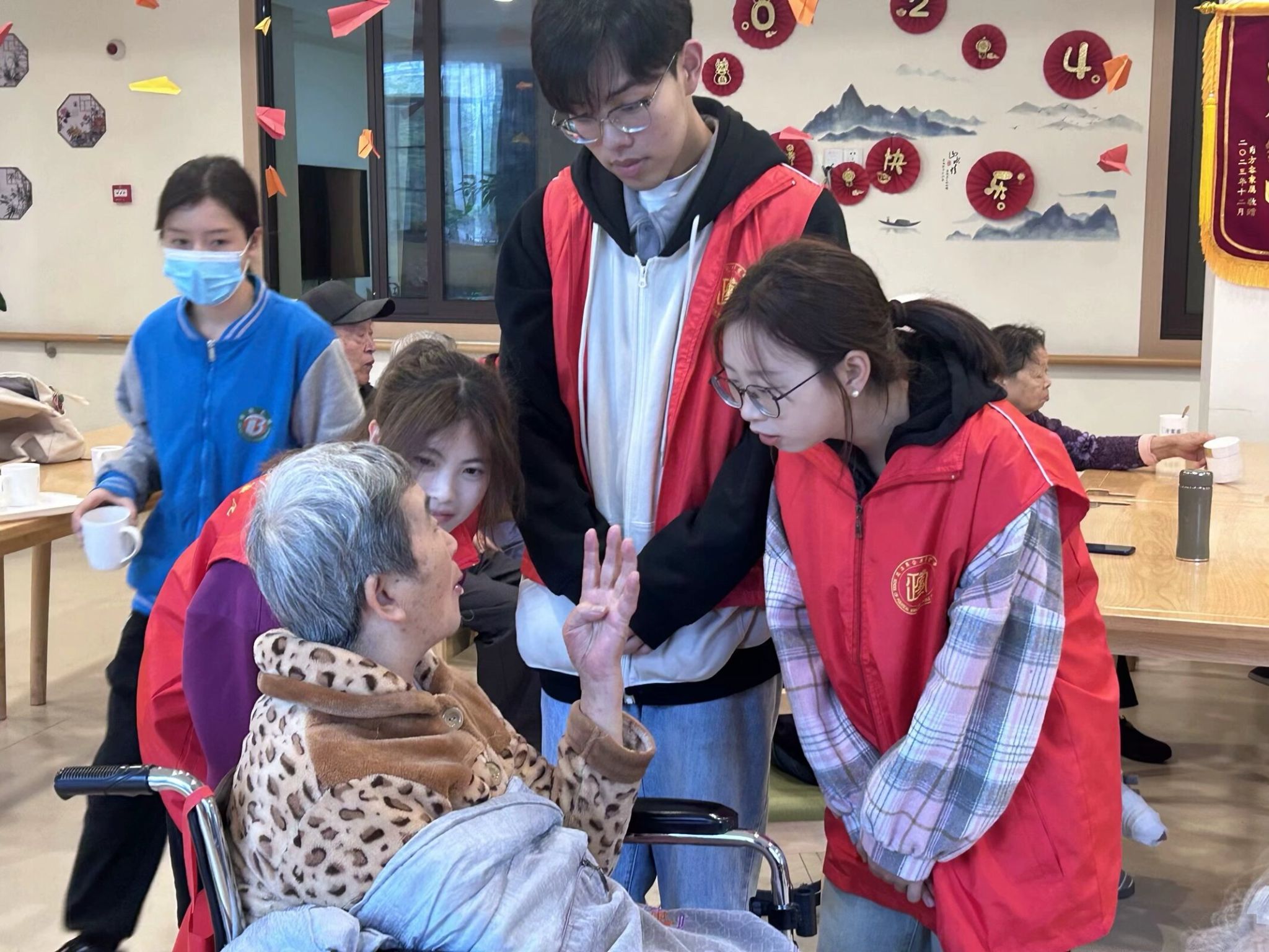 本次活动以表演节目和游戏互动为主。活动中,志愿者们在主持人的带领下表演了“阿拉桑桑”手势舞、合唱《开心往前飞》,全场气氛热烈;同时,志愿者还认真、耐心地教授老人们做拍拍操。通过这一系列活动,老人们既锻炼了身体,又在欢乐的氛围中感受到了关爱和温暖。表演节目结束,为更好的了解老人们的日常生活,志愿者陪老人一起聊天话家常,帮他们捏肩、捶背。在交谈中,老人们向志愿者讲述了自己的故事,谈话间拉近了彼此的距离,使此次志愿活动更富温暖与活力。