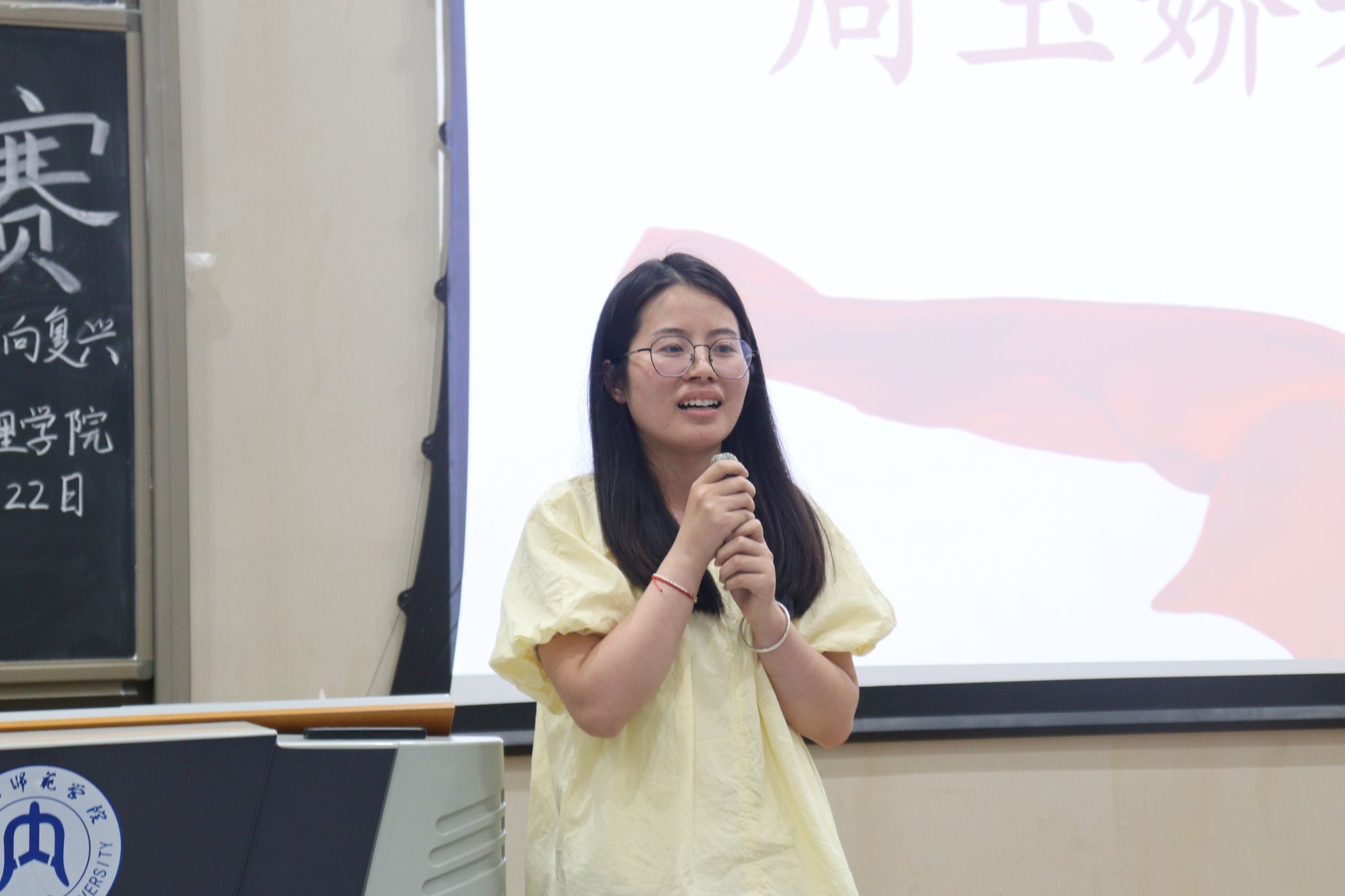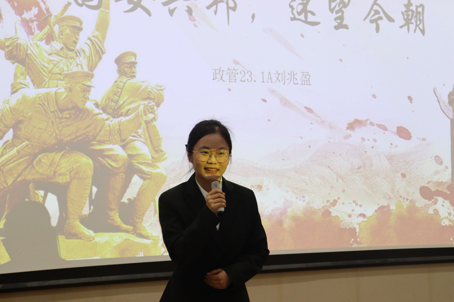 比赛伊始,主持人对此次演讲比赛致开幕词。随后,24名参赛选手按照抽签顺序,依次登台进行演讲。在比赛中,选手们紧扣“踔厉奋发强国防·勇毅前行向复兴”的活动主题,各抒己见,各展风采。他们或以时间为轴,串联并回顾了近现代国防的发展历程;或以献身国防的典型事迹为引,抒发了建设国防、拥军爱党的担当情怀;或从近年来的国防热点问题出发,强调了强军建设、居安思危的必要性。选手们的演讲,慷慨激昂,声声有力撼人心,句句铿锵催奋进,深深打动了在场的评委与观众。经过激烈的角逐和在场评委的公正评选,谢卿淼、刘兆盈两名同学荣获一等奖。比赛最后,周玉娇对此次活动进行总结,她对选手们的热情参与与认真准备表示感谢,也对选手们积极向上的的精神风貌以及稳健的台风作出了充分肯定,并希望同学们都能延续红色血脉,厚植家国情怀,内化于心,外化于行!在会场全体师生的热烈掌声中,此次活动圆满落下帷幕。