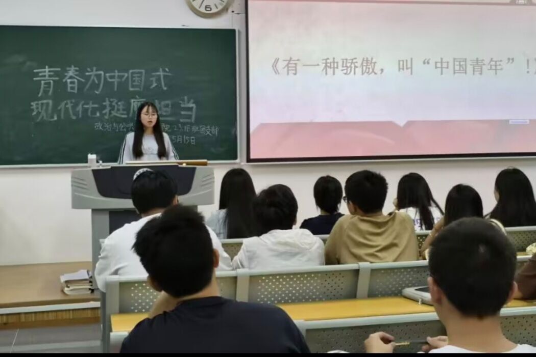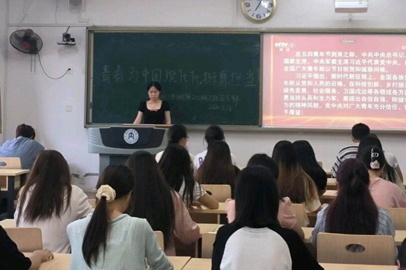 活动伊始,各班团支书对本次活动的目的与主要内容进行了简要介绍,并组织全体同学齐唱中国共青团团歌《光荣啊,中国共青团》,进一步增强了同学们的团员意识。随后,各班团支书组织同学们学习文章《习近平向全国广大青年致以节日祝贺和诚挚问候》《新华社评论员:书写为中国式现代化挺膺担当的青春篇章》,并请同学们分享读后心得。接着,同学们观看了视频《有一种骄傲,叫中国青年!》,深刻理解出了何为“五四”青年精神。最后,各班团支书组织开展了关于五四精神的知识问答,让同学们思考如何在新时代传承并弘扬五四精神,并以广大优秀青年为榜样,做好新时代的奋进者、拼搏者、接力者。同学们全程积极参与,各抒己见,踊跃发表自身观点,展现了当代青年老员工的责任与使命。