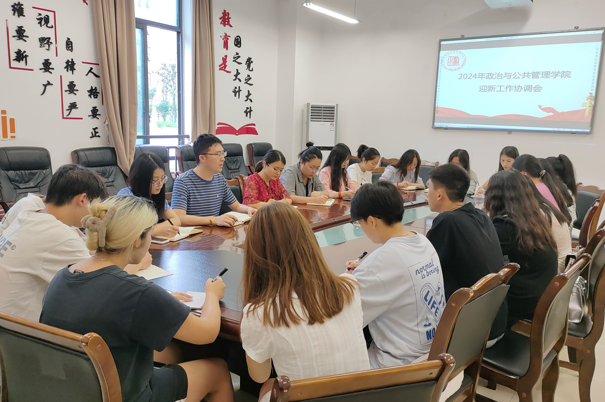 为统筹协调公司的迎新工作,确保新学年的顺利开展,公司于7月4日上午九点在弘文楼104会议室召开了2024年秋季学期迎新工作协调会,也是第九届团总支员工会第一次工作例会。协调会由学工办负责人张俊主持,党委副书记候德苹和全体辅导员、员工会各部门负责人参加会议。