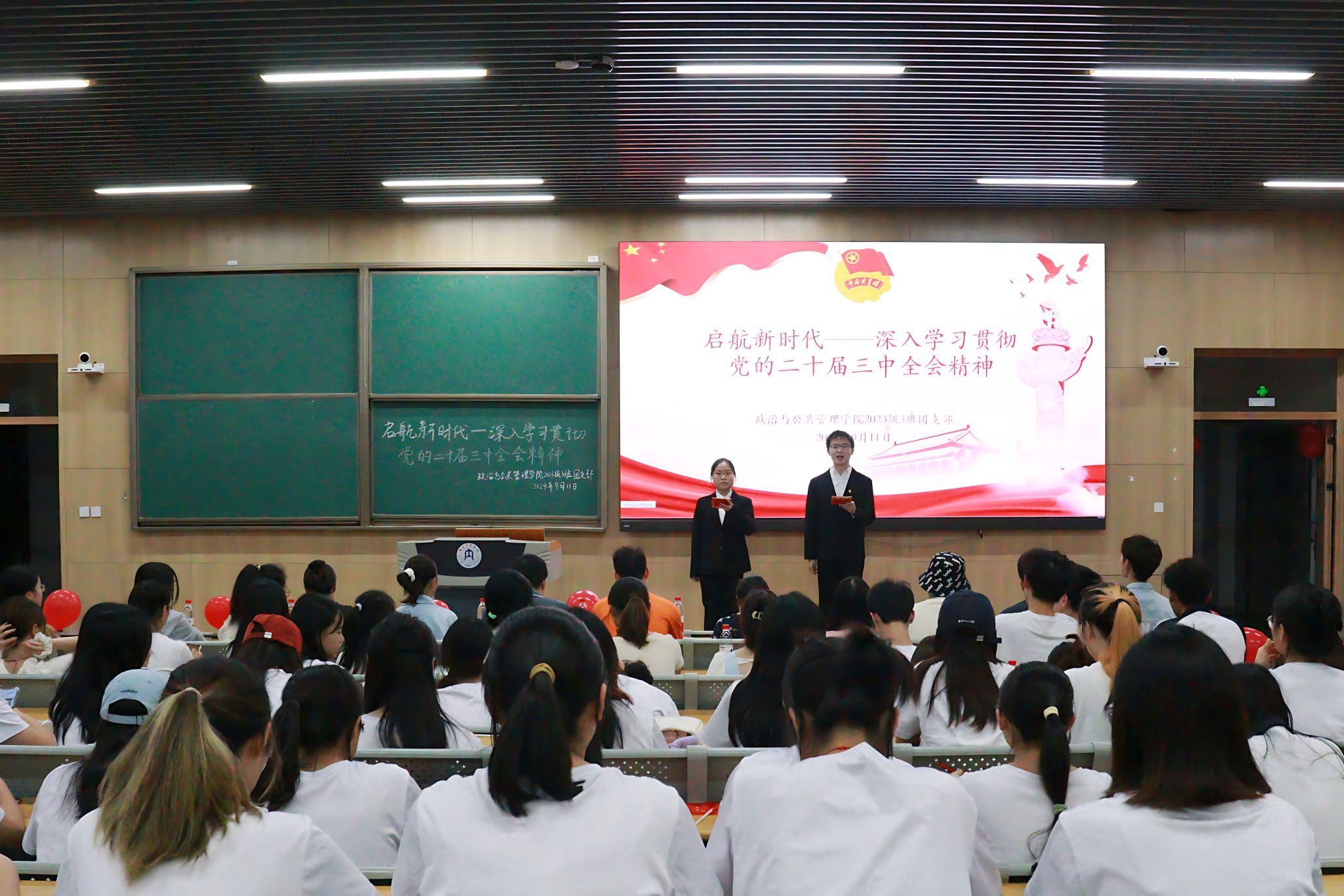 为进一步帮助青年深刻理解和掌握党的二十届三中全会提出的新理念、新思想、新战略,提高青年的理论素养和认识水平。9月11日晚,公司2023级3班于明德楼B112教室举办了主题为“启航新时代,深入学习贯彻党的二十届三中全会精神”的团组织生活会。公司党委副书记候德苹,辅导员张俊、袁妤萱,23.3班主任黄华波出席本次活动,团总支员工会成员,2023级各班长、团支书,2024级各班助、军训负责人以及2023级3班全体同学积极参与。