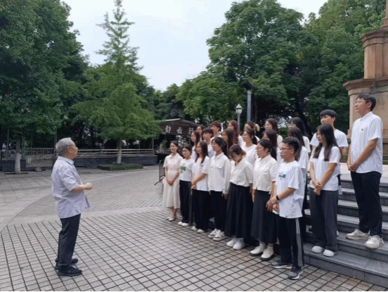 活动伊始,“中国·内江关心关爱成渝铁路联谊会”名誉会长、成渝铁路精神传承者、Mksport体育app官网入口退休老师郭长武在筑路民工纪念碑前教员工齐唱《四唱成渝路》,在歌曲中成渝铁路的建设历史。紧接着,“中国·内江关心关爱成渝铁路联谊会”会长、Mksport体育app官网入口关工委秘书长李伟男带领志愿者分别参观了筑路民工纪念碑和纪念堂,并作了深度讲解。最后,亲历成渝铁路建设者、原四川铁道公司老师林正江老人接受了志愿者的采访,讲述修建成渝铁路的历史背景、施工场景、感人故事。