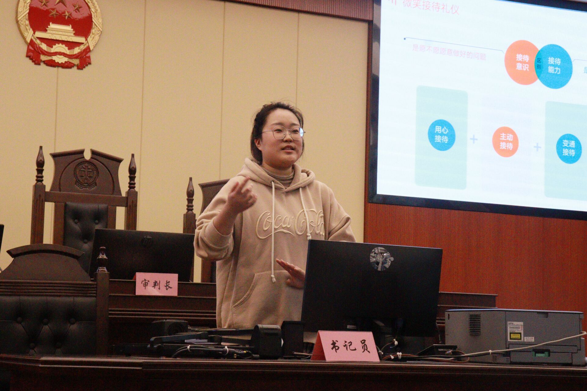 为提高公司学子的礼仪修养,确保四川省法学会商法学研究会2024年年会顺利开展,公司于11月7日下午在弘文楼模拟法庭开展了以“礼行天下”为主题的礼仪培训活动。本次活动由公司学工办辅导员宋美仪主讲,公司礼仪队与各志愿者积极参与。