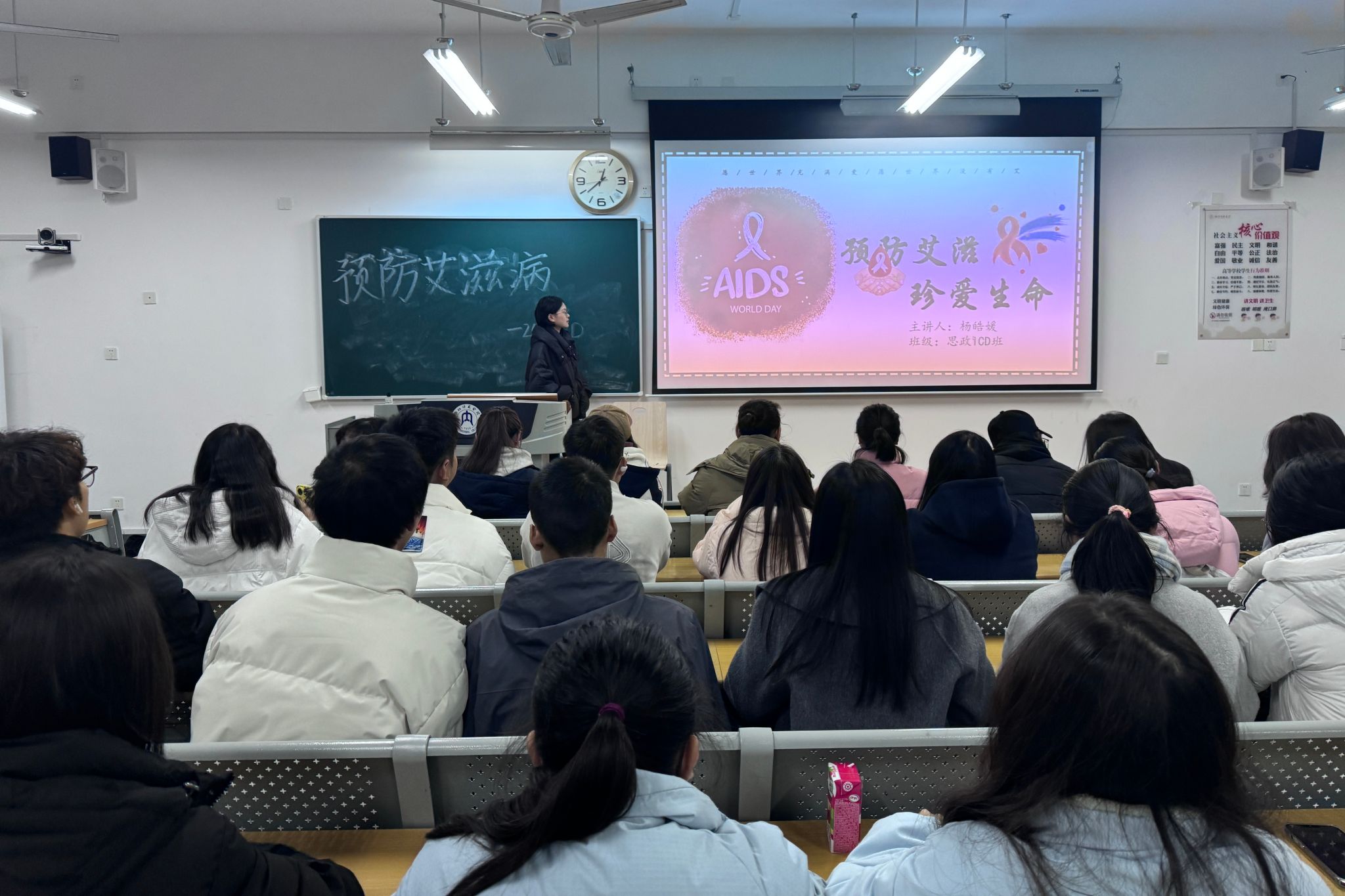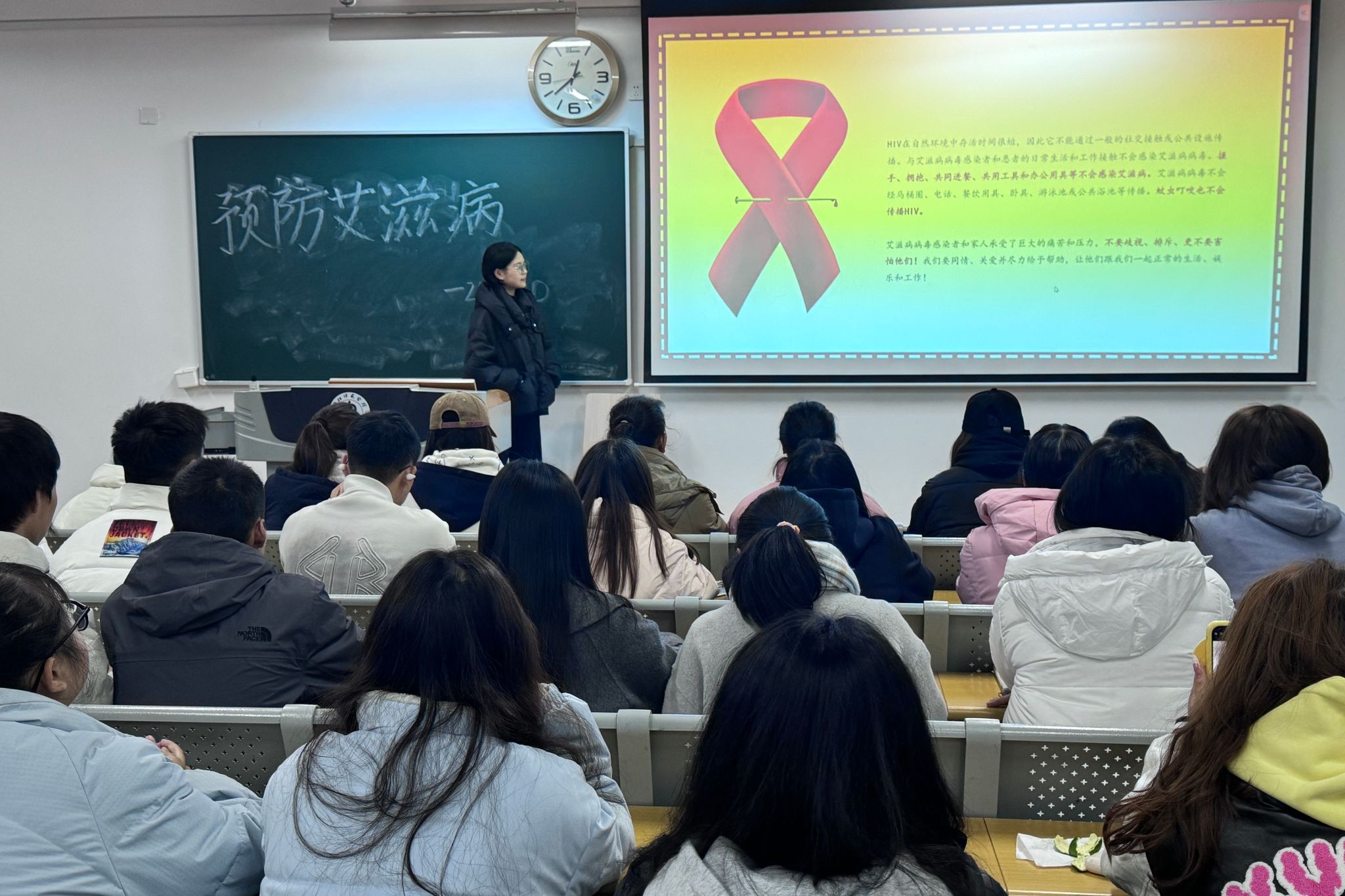 为了提升员工识毒、防毒、拒毒的意识与能力,加强艾滋病防治知识宣传教育,引导员工树立“健康第一责任人”理念。我院于12月1日在明德楼各教室相继开展了以“禁毒防艾”为主题的班会活动。此次班会由各班主任主持,全体同学积极参加。