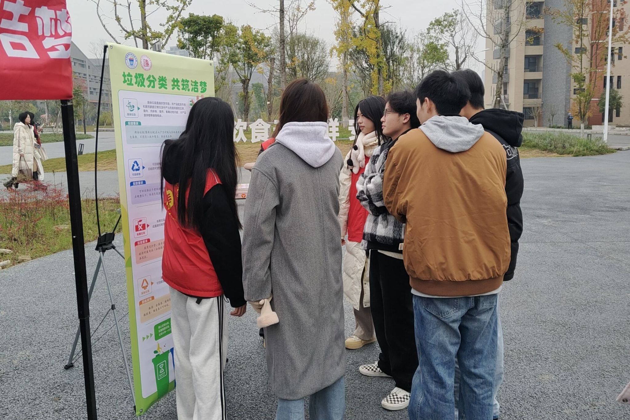 为帮助同学们养成垃圾分类的良好习惯,推动构建清洁美丽的校园环境,公司志愿服务队于2024年11月29日在二食堂附近开展了以“垃圾分类,共筑洁梦”为主题的宣传志愿活动。