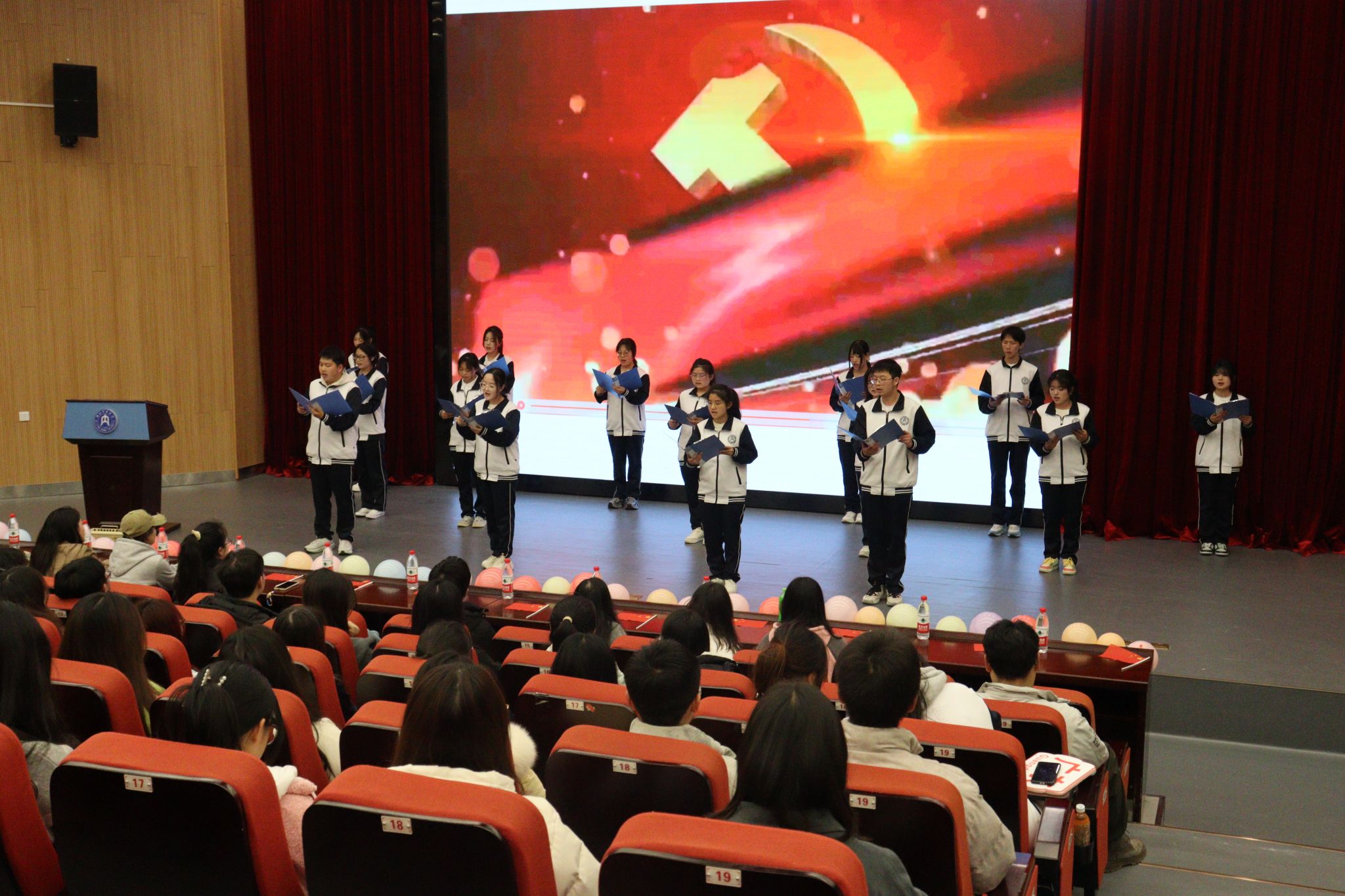 活动伊始,全体师生整装肃立,齐唱中国共青团团歌《光荣啊,中国共青团》,歌声响彻整个会场,充分展现了当代青年的蓬勃朝气。全体师生观看了视频《中国共青团纪律处分条例》,共同学习了中国共青团纪律处分条例,将团的纪律要求与行为准则牢记于心。同学们用诗朗诵《春天的赞歌》诵出了生命的力量、梦想的航向;舞姿翩跹的新疆舞蹈《逐光守纪舞青春》和《黑走马》展现了浓郁的西域风情和独特的民族魅力;歌曲《晴天》唱出了青春的壮志凌云和共青团员的使命与担当;情景剧《最后一课》让我们看到了师生们在破碎山河中的坚韧与不屈和对祖国的热爱与对自由的渴望;大合唱《紫荆花盛开》描绘了香港回归后蓬勃发展的景象。活动尾声,班主任周玉娇进行总结发言,她对本次活动给予了高度肯定,并强调全院同学都要深刻领会本次活动的内涵价值,将其转化为推动自身进步的精神力量,于今后的学习和生活中将其付诸于实践,努力做一名优秀的共青团员。