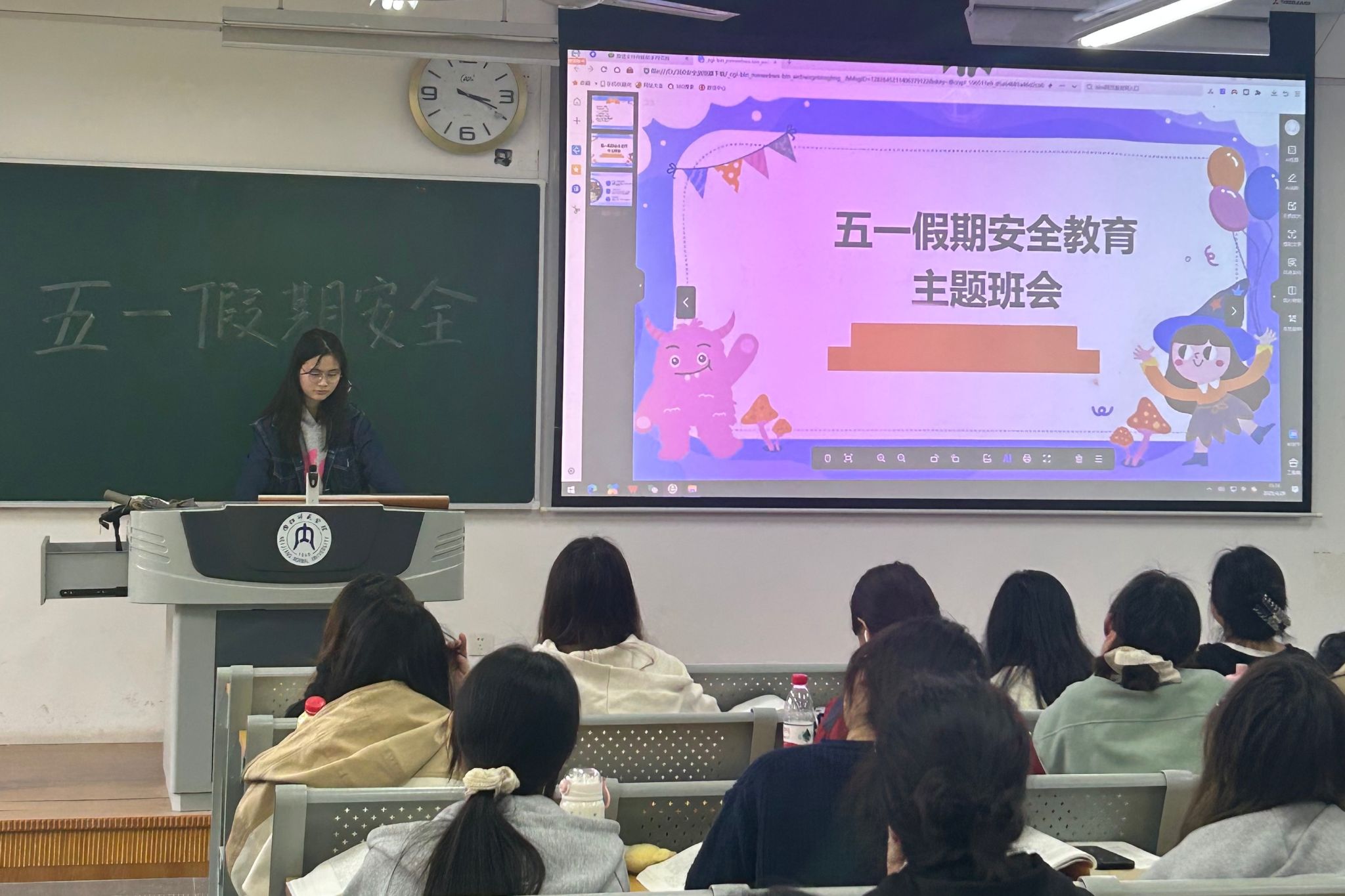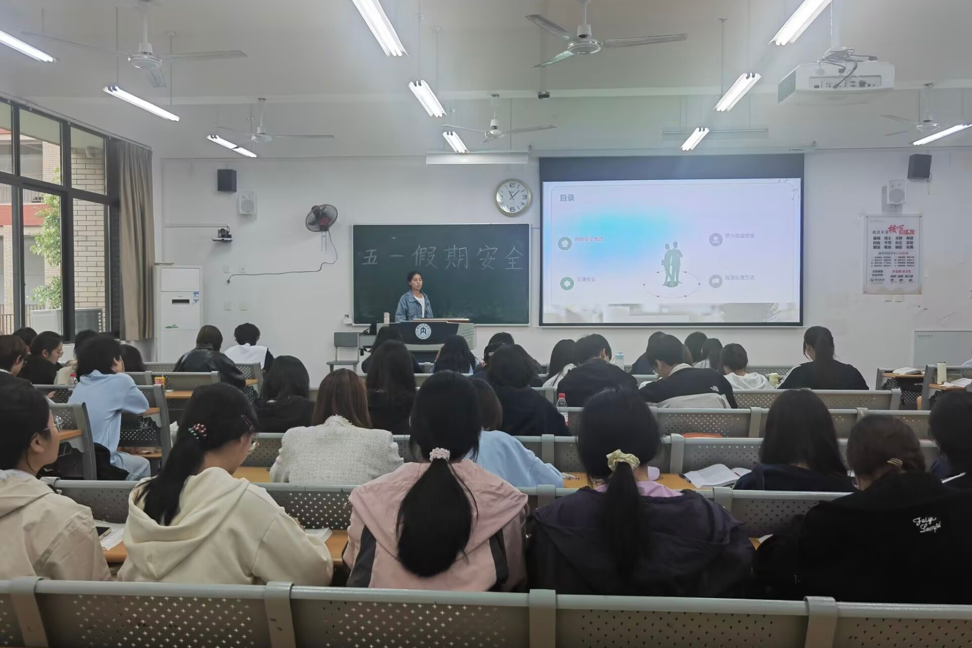 各班主任通过案例分析、互动讨论等形式系统普及了交通出行、饮食卫生、消防安全等知识,结合五一假期特点,重点提醒涉水、登山等户外活动的潜在风险。同学们积极参与讨论,分享自身经历与应对经验,分析各类安全事故案例,在交流中提升应急自护能力,凝聚起“安全第一”的共识。