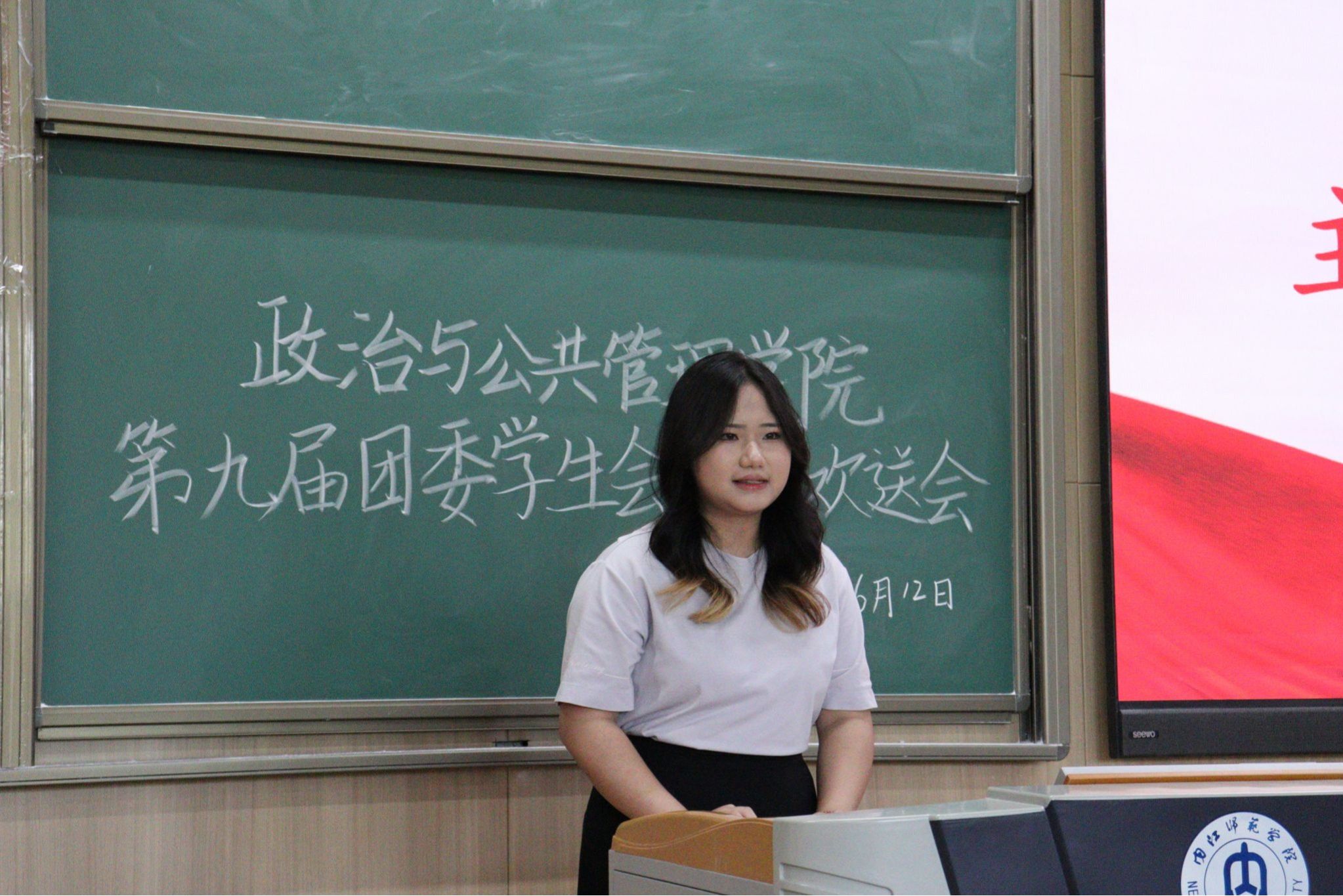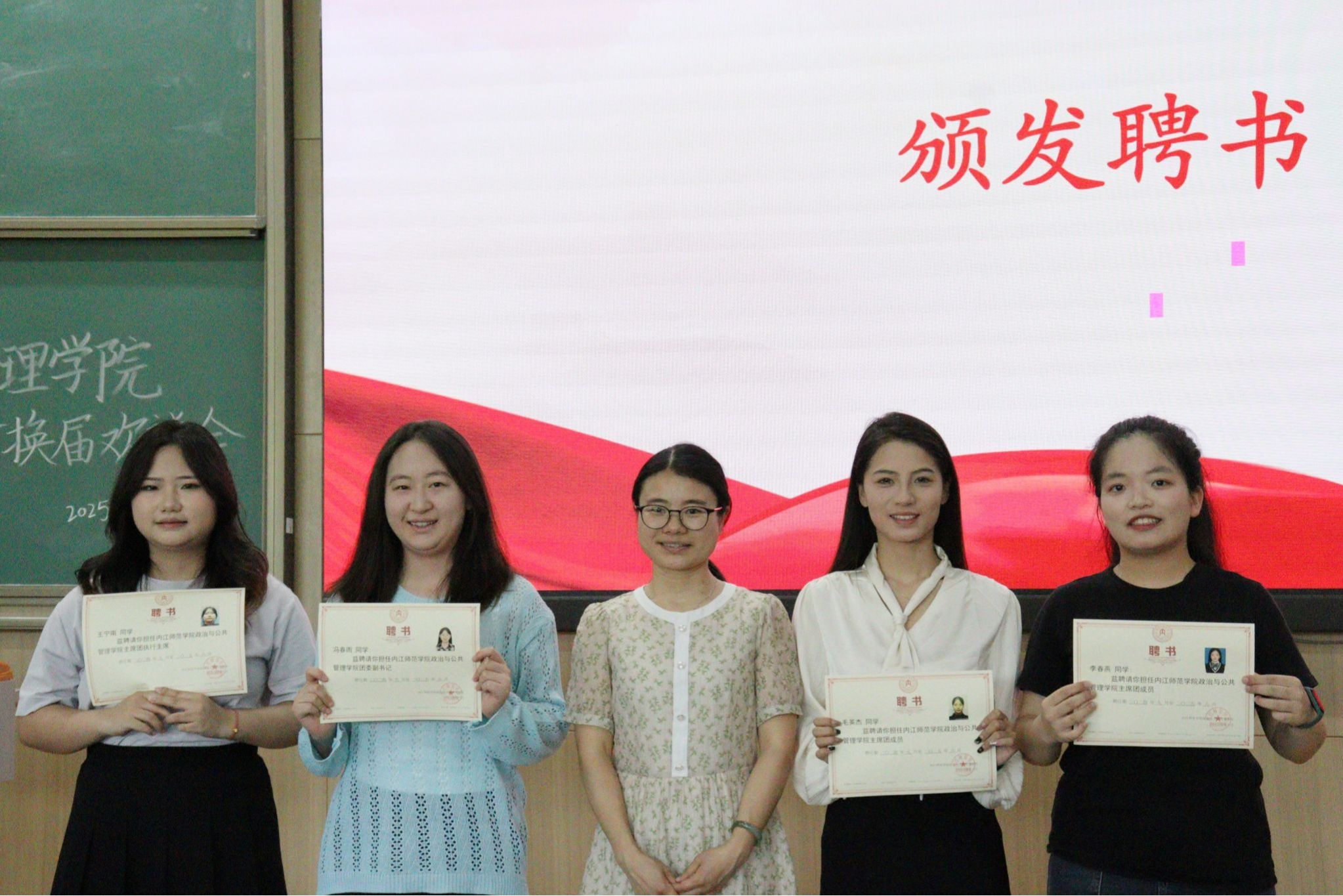 公司于6月12日在明德楼B112教室举办团委员工会换届大会。公司党委副书记候德苹,学工办辅导员宋美仪、袁妤萱、周玉娇、李宇璟,第九、十届团委员工会全体成员积极参加。