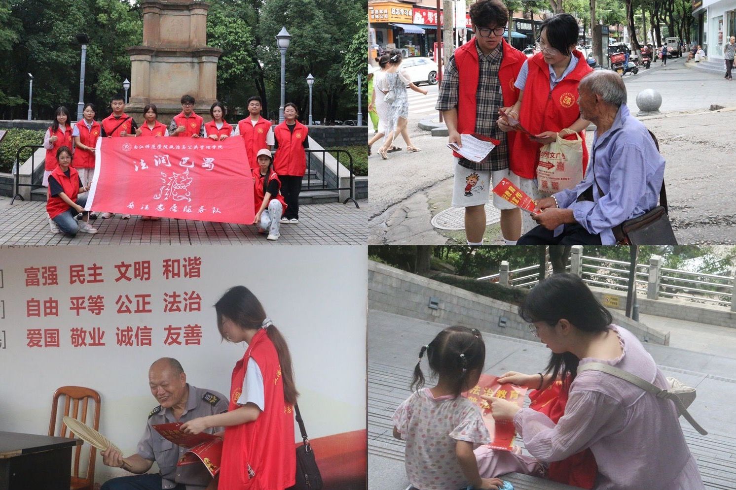 为提升公司员工实践能力与社会责任感,强化全民守法意识、推动法治中国建设。公司“法润巴蜀”普法志愿服务队于6月30日至7月4日在学工办辅导员袁妤萱的带领下,在内江市高新区、市中区等地分别开展以“‘法’入民心,‘典’亮生活”为主题的“暑期三下乡”社会实践活动。