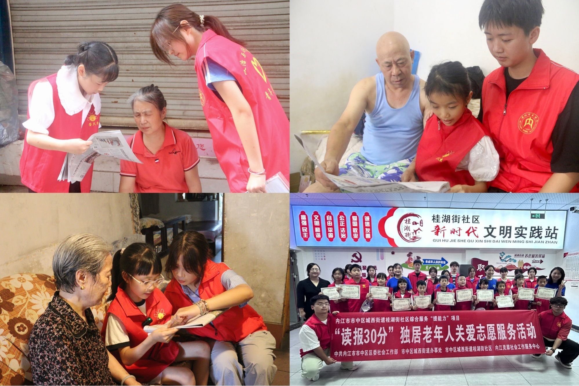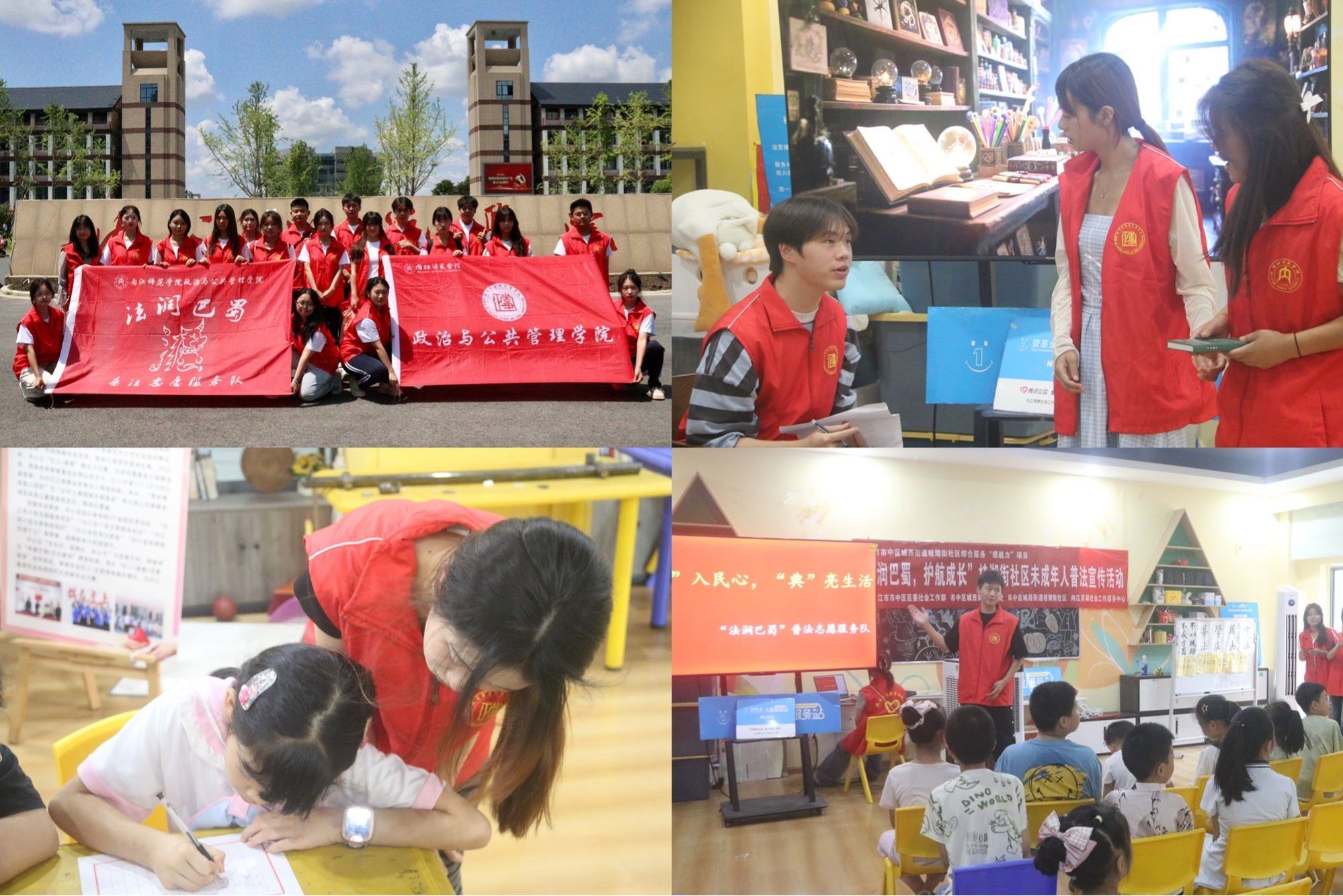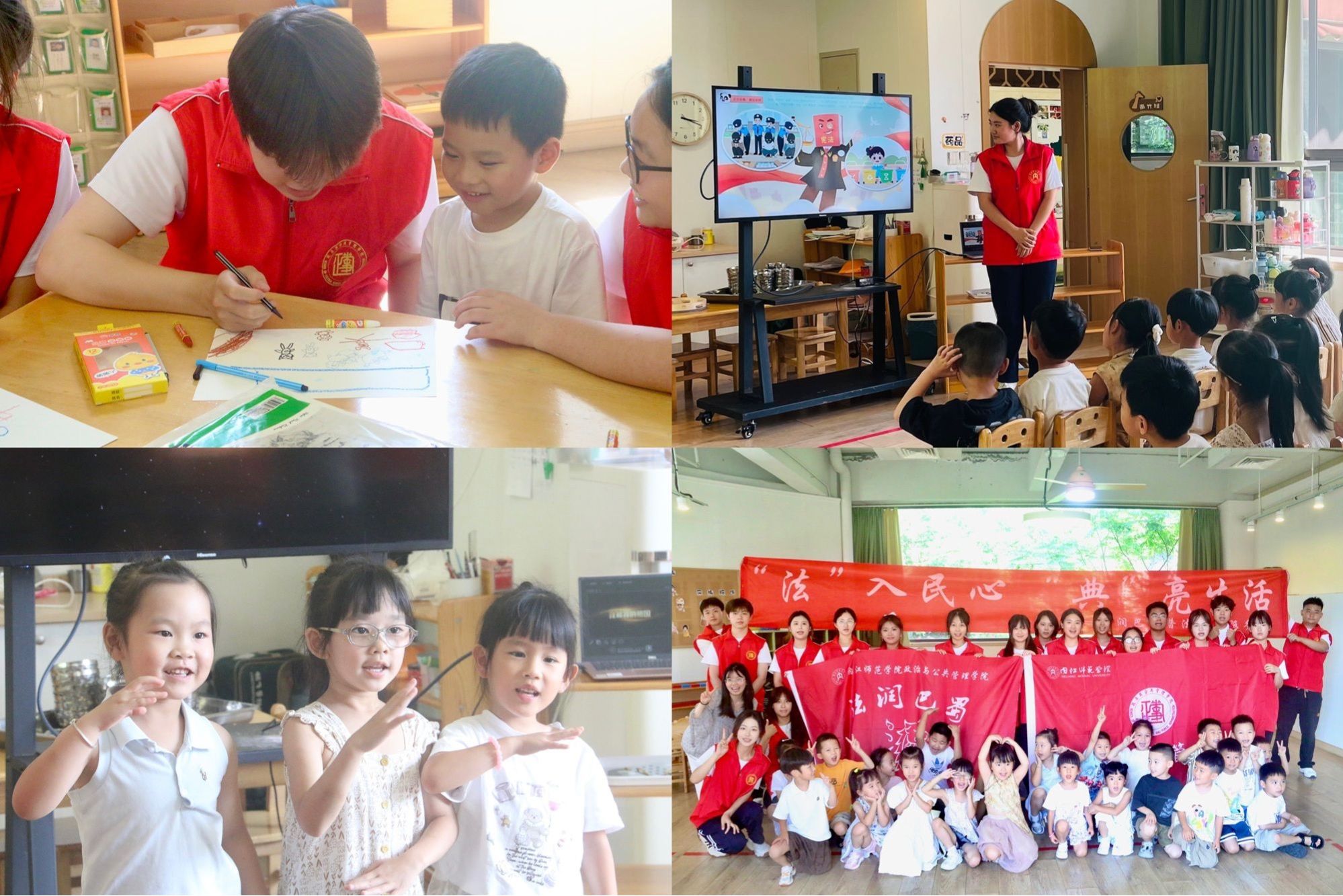 活动首日,服务队前往梅山公园参观成渝铁路纪念碑了解成渝铁路的建设历史,以发放普法宣传单的形式,向市中区群众讲解、普及法律知识,传递法治温度。此后,服务队在高新区领飞蒙娃幼儿园开展了为期两天的以“趣味普法润童心”为主题的活动。活动现场,服务队为小朋友们普及宪法知识,通过做游戏讲解交通法规,与小朋友们合唱歌曲、进行绘画创作,在潜移默化中加强宪法意识。次日,服务队通过讲述法律小故事、舞蹈教学以及手工创意制作等方式,让小朋友们在寓教于乐中增强法治素养。在市中区桂湖街社区儿童服务站,服务队围绕民法典、劳动法等与生活相关的法律知识展开讲解,在游戏过程中穿插趣味问答、情景模拟等互动环节,并指导小朋友们书写法律标语书法作品,让小朋友们感受法治熏陶,学习法律知识、提升运用法律的能力。活动最后一站,服务队携手小员工志愿者们,走进社区老人家中开展“法治伴夕阳”读报送法活动,以上门读报、互动聊天的形式,为老人送去法律关怀,也为青少年种下法治与公益的种子。