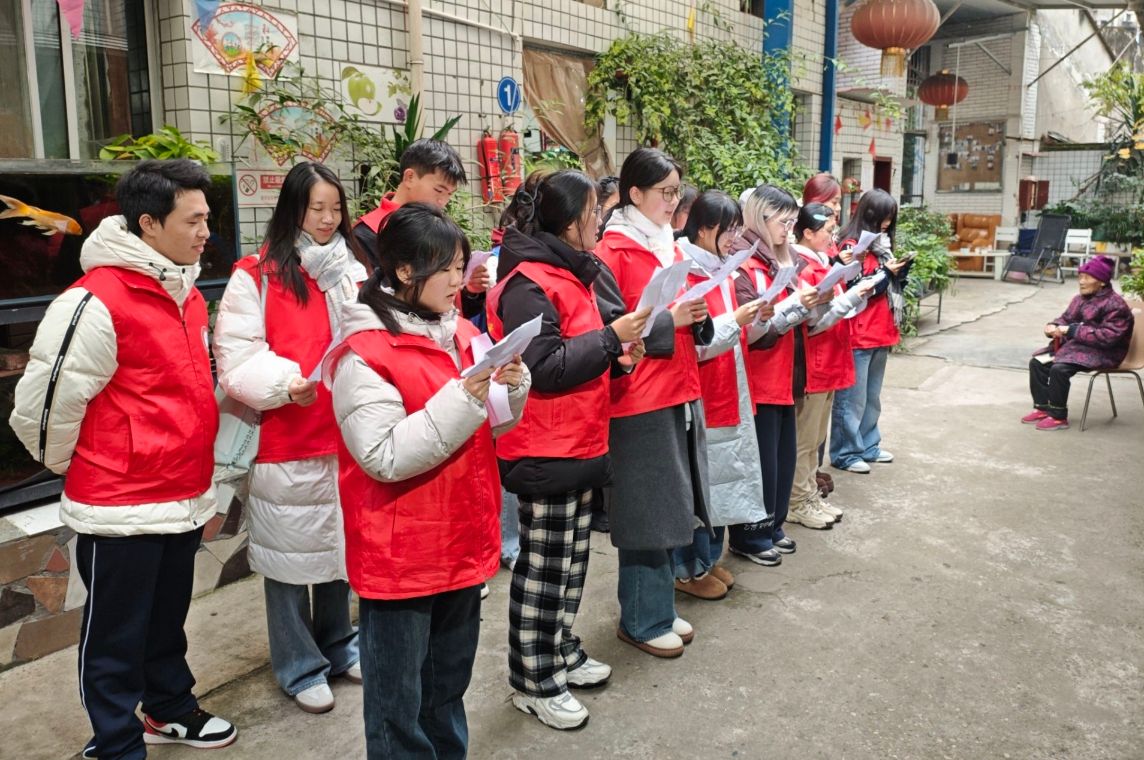 活动现场暖意融融,志愿者们饱含深情地朗读“守护夕阳红”主题诵词,点燃现场氛围;经典曲目《甜蜜蜜》的合唱,进一步拉近了与老人们的心灵距离。随后,志愿者们围坐在老人身旁倾听岁月故事,畅谈日常点滴,让浓浓温情充盈公寓的每个角落。在轻松愉悦的氛围中,老人们纷纷称赞志愿者朝气蓬勃,为公寓带来了欢声笑语。