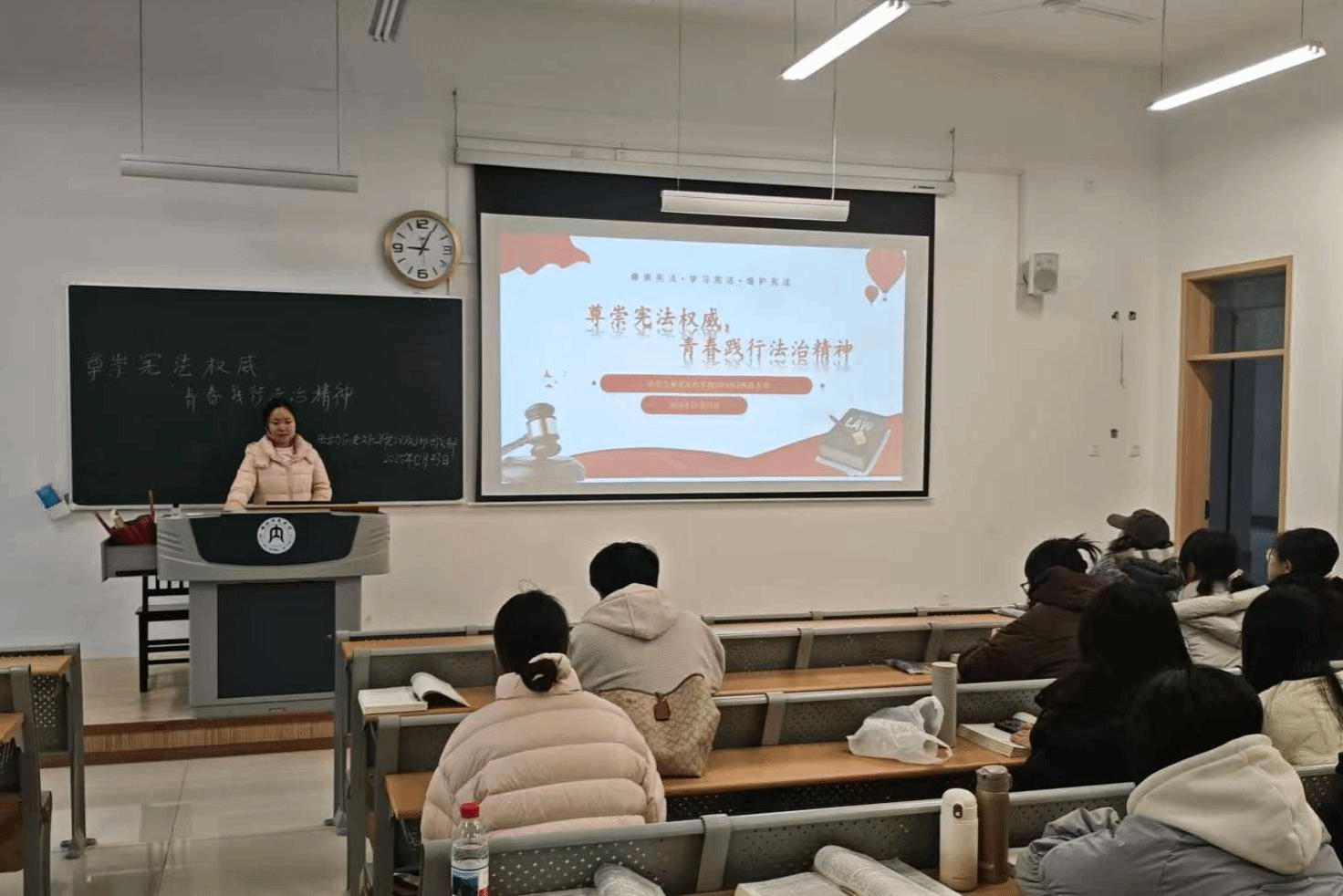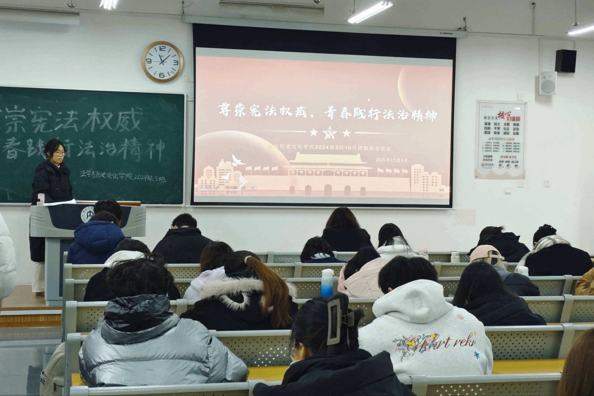 为全面弘扬宪法精神,增强同学们的法治意识,公司各班团支部于12月26日在明德楼各教室陆续召开以“尊崇宪法权威,青春践行法治精神”为主题的团组织生活会,本次会议由各班团支书主持,全体同学积极参与。