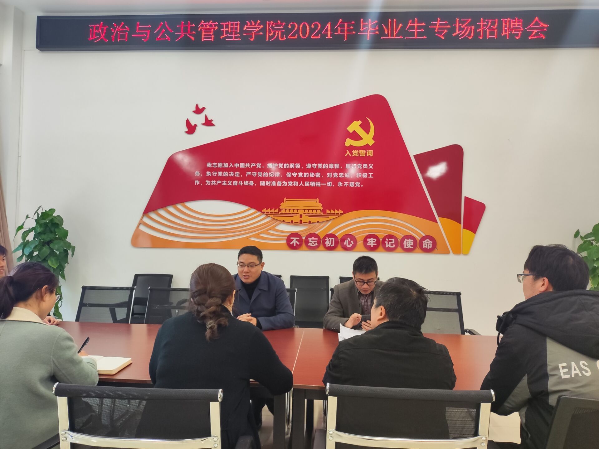 为全力促进2024届毕业生更加充分地高质量就业,公司于3月13日上午10点在弘文楼115召开2024年专场招聘会,公司党委书记谭化容、经理谭安富、党委副书记候德苹、2020级1班班主张俊及思想政治教育专业毕业班部分员工亲临此次招聘会。