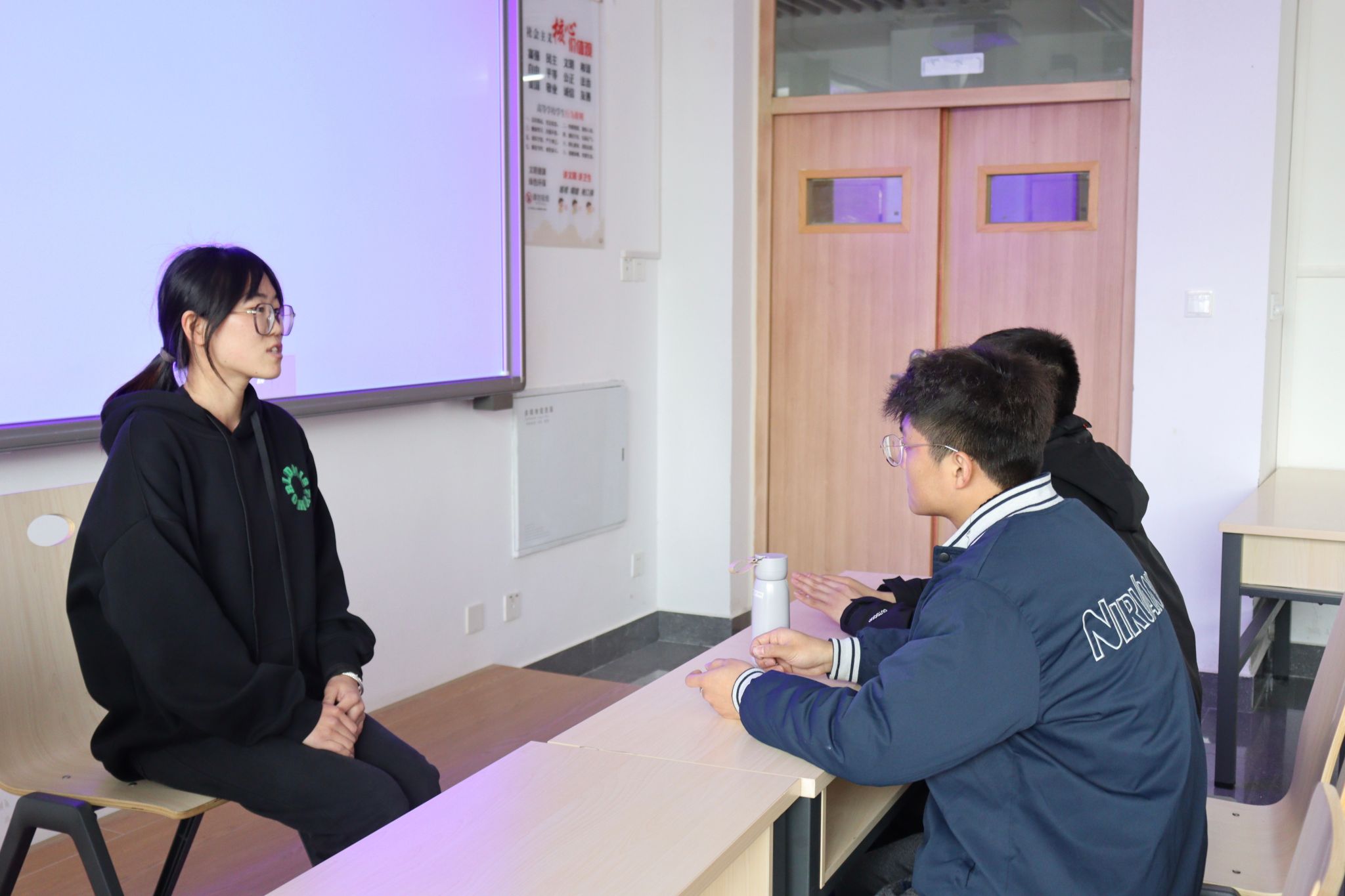 会议伊始,张俊依次向同学们介绍了进行考研复试经验交流的三位在读研究生员工。随后,三位员工结合自身经历,分别从复试的流程、复试参考书目的选择、复试相关材料的准备、面试的方法和注意点、面试的礼仪等方面进行细致讲解。同时,他们强调复试主要分为考生英文自我介绍和考官提问两个环节。其中,英文自我介绍需要考生事先准备,一定要练好口语,做好英语听说测试;考官问答主要是是进行专业课问答,专业课内容应及时做好复习巩固,回答问题要沉着冷静,条理分明。紧接着,为帮助考研复试员工熟悉面试流程,提升复试技巧,三位员工当场邀请了一位同学进行复试流程模拟,并针对她在面试过程中存在的问题进行了讲解和指正。最后,张俊对三位在读研究生员工的分享表示感谢,并表示希望复试的同学们在接下来的时间里多加练习面试环节以及做好学习计划,祝愿同学们都能成功上岸,阳关万里!