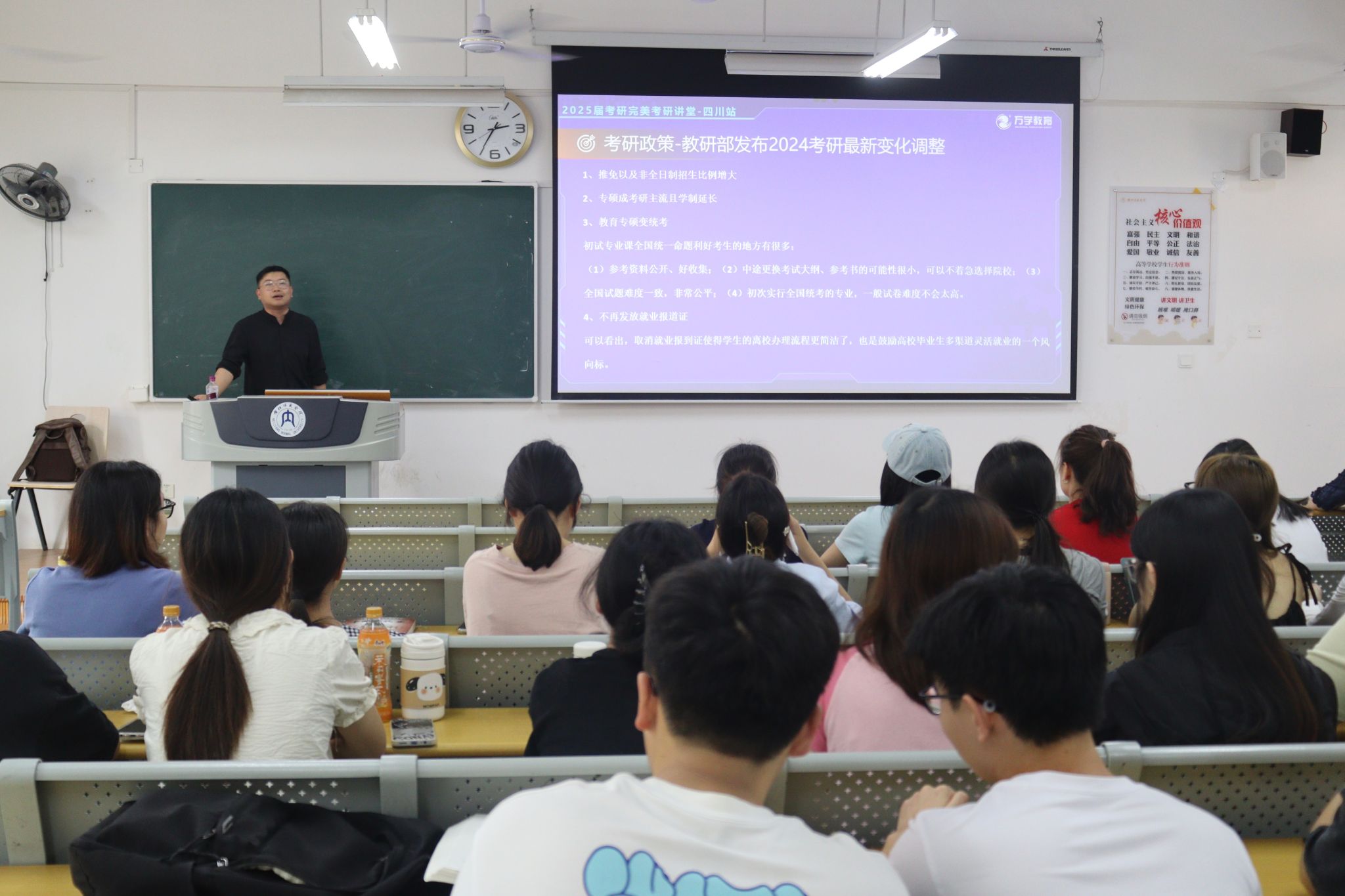为帮助公司有意向考研的员工更好了解考研政策、掌握择校技巧,为他们的深造之路提供有力支持,5月17日,公司就业指导中心特邀万学教育朱子骁老师在明德楼B202教室开展了研究生备考指导讲座。本次讲座由辅导员张俊主持,2021级员工积极参加。