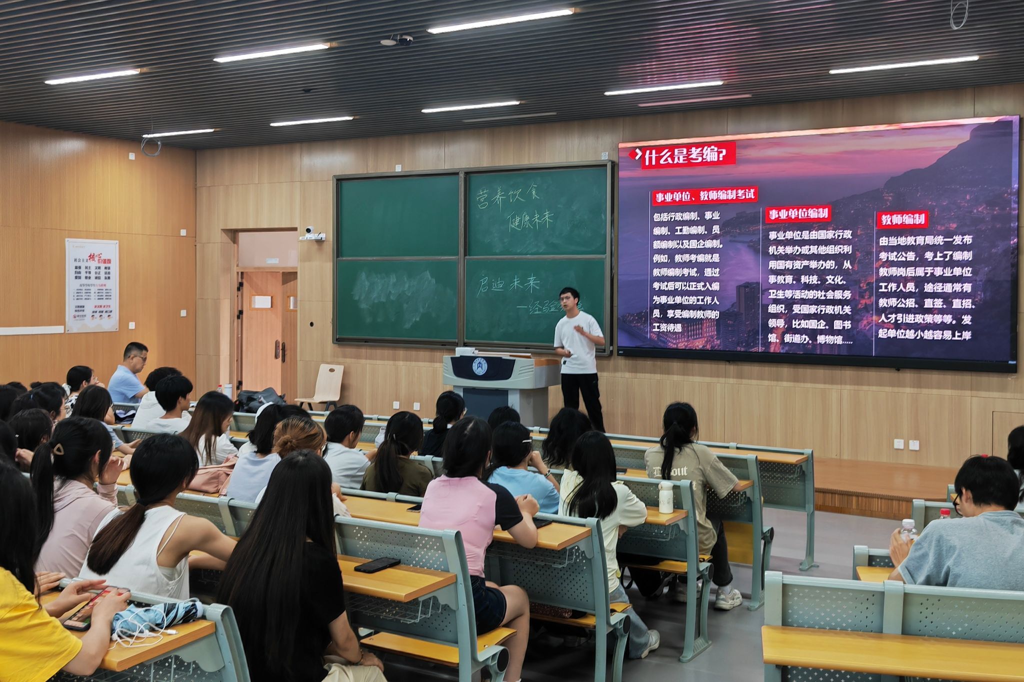 本次分享会上,雍波、陈文燕分享了自己的求职经历,他们指出:“就业过程中,我们要敢于尝试,不怕失败。每一次面试都是一次学习和成长的机会,我们要从失败中吸取教训,不断提升自己。”他们还建议大家珍惜大学时光,多参加实践活动,提升个人综合素质。其次,杨铭和徐靖雯为大家带来了考研方面的经验分享。杨铭从择校、备考、心态调整等方面为大家进行了详细的介绍。徐靖雯则重点讲述了考研过程中的学习方法和技巧,她分享了自己的学习笔记和复习资料,为大家提供了宝贵的参考。她建议大家在备考过程中要注重基础知识的巩固和拓展,多做真题和模拟题,提高自己的应试能力。最后,白加宝对本次分享会进行总结,他表示,希望同学们能够从师兄师姐们的经验中汲取力量,勇敢追求自己的梦想。