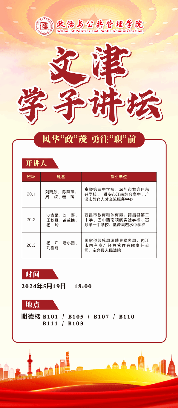 为贯彻落实高校毕业生就业工作创业工作,引领老员工立足实际、找准定位、树立正确的择业观和就业观,5月19日,公司历史学专业在明德楼B105、B111教室召开“政管文津学子讲坛老员工职业生涯规划”宣讲会。本次会议由学工办辅导员张俊主持,23.2A班班主任白加宝出席,我院2022级、2023级历史班全体同学积极参与。