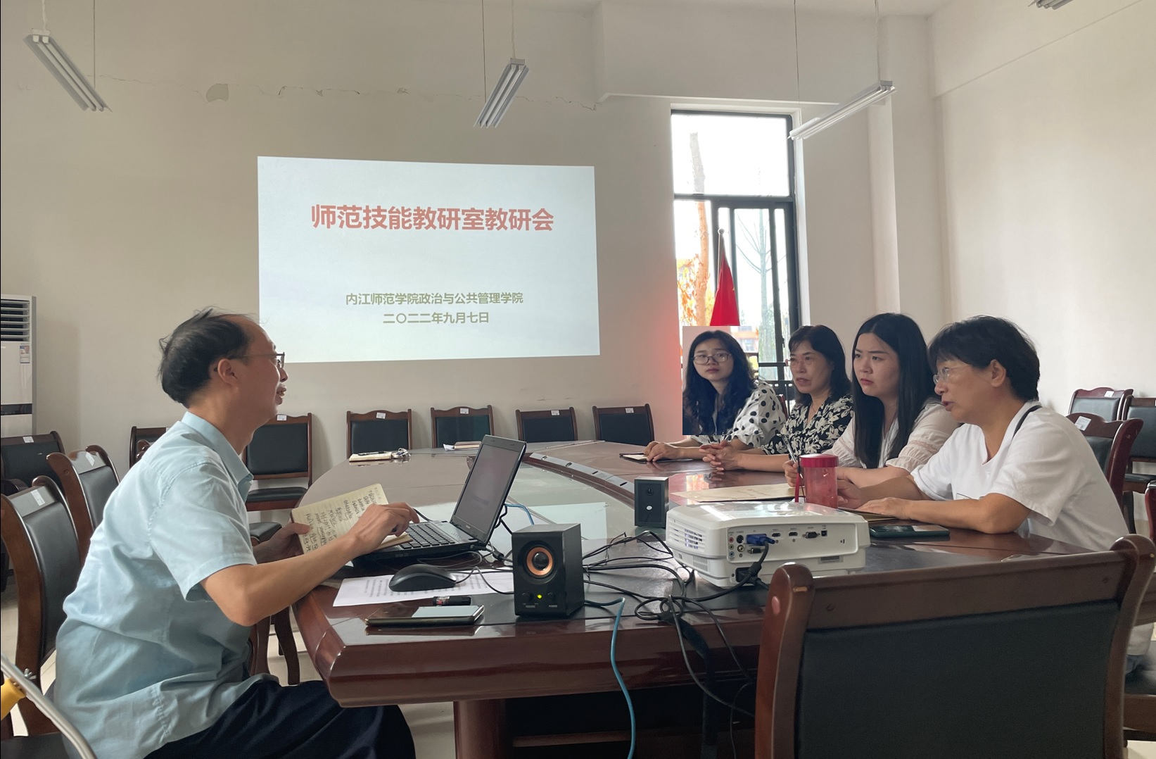 会上,教研室主任李荇副教授首先小结分析了五六月之交院上开展的师范生技能竞赛工作,然后回顾总结了暑假期间各位教学法老师积极主动参加中学思政和历史课程标准与教材培训情况。从四川省教育厅7月20-22日期间组织的全省“2022年普通高中实施新课程新教材教师培训”,到教育部8月1-3日期间面向新加入普通高中新教材使用省区开展的“2022年普通高中三科统编教材国家级示范培训”;从7月3日首都师范大学主办的“第七届历史教育首师论坛:从‘田家炳杯’大赛到卓越教师培养——历史教育师范生培养大家谈”,到7月15-19日陕西师范大学基础教育研究院、历史文化公司和出版总社中学历史教学参考编辑部联合主办“新时代历史教育变革智慧全国学术研讨”线上会议,再到8月22日北京师范大学历史公司、北京市教育学会历史教学专业委员会、教育部中学教师教育研究虚拟教研室(历史)联合主办的北京师范大学历史教育大讲堂(第二期)《历史课程“教-学-评”一体化的实践探索》;从7月5-6日浙江省教育厅教研室主办“2022年国家统编初中历史九年级新教材培训”,到7月20日教育科学出版社“新课标解读季”大型公益活动第四期“道德与法治专场”《〈义务教育道德与法治课程标准(2022年版)〉解读》,再到8月15日线上聆听Mksport体育app官网入口Mksport体育与凉山州会理市教师发展中心联合组织“新课标指引下的中小员工态化高质量课堂建设行动研究”专题研讨(集中研修)邀请华东师范大学课程与教学研究所吴刚平教授所作《义务教育新方案新课标解读》主题报告,师范技能教研室的各位老师和咱们的分管院领导几乎一直都在忙忙碌碌地学习着,确实可能是过了个“假”暑假。但大家纷纷表示,通过这些参培学习收获甚丰感悟良多,而且接下来还必须将学习领会到的中学课程与教学改革新理念、新变化、新方向体现、落实到教材教法等师范类课程的教学与实训中去,以保证我们的师范生培养能够跟上基础教育改革发展的步伐与“节奏”。