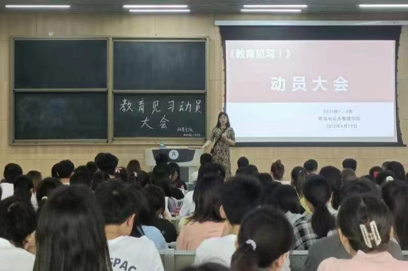 为切实做好2021级师范专业的第一次教育见习工作,政治与公共管理公司师范技能教研室于2022619日上午在明德楼B008号阶梯教室组织思想政治教育(211班)和历史学(212班)专业170余名同学召开动员部署大会,公司党委候德苹副书记,历史学专业负责人黄文记博士,师范技能教研室肖乃慧、蒋兴巧和院学工办宋美仪、张俊老师出席会议。