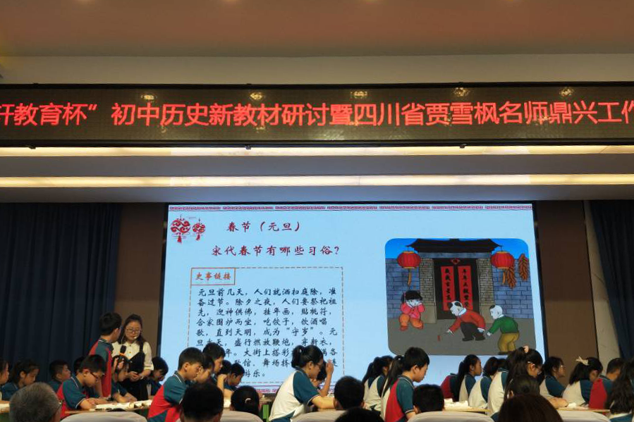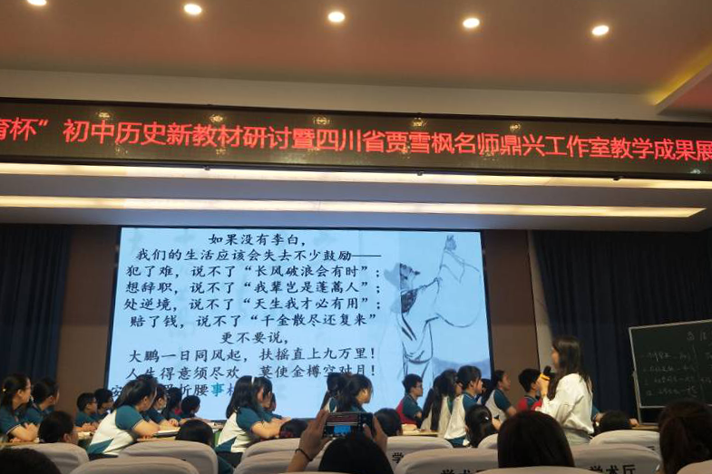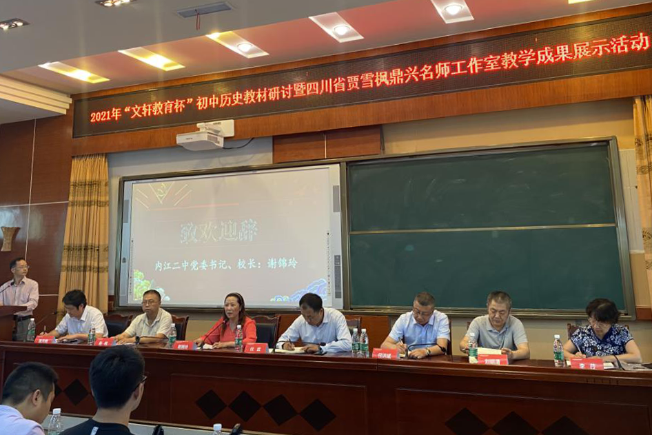 2021年5月14日,由“四川省贾雪枫名师鼎兴工作室”“四川基础教育学科教学改革研究团队”“绵阳师范公司四川基础教育研究院”“新华文轩内江市分公司”“内江市教育科学研究所”共同主办的2021年“文轩教育杯”初中历史新教材研讨暨四川省贾雪枫名师鼎兴工作室教学成果展示活动,参会的各地历史教师达400人之多。16位来自四川各地的初中优秀历史老师于14日上午分别在二中,六中,七中,铁中讲课。