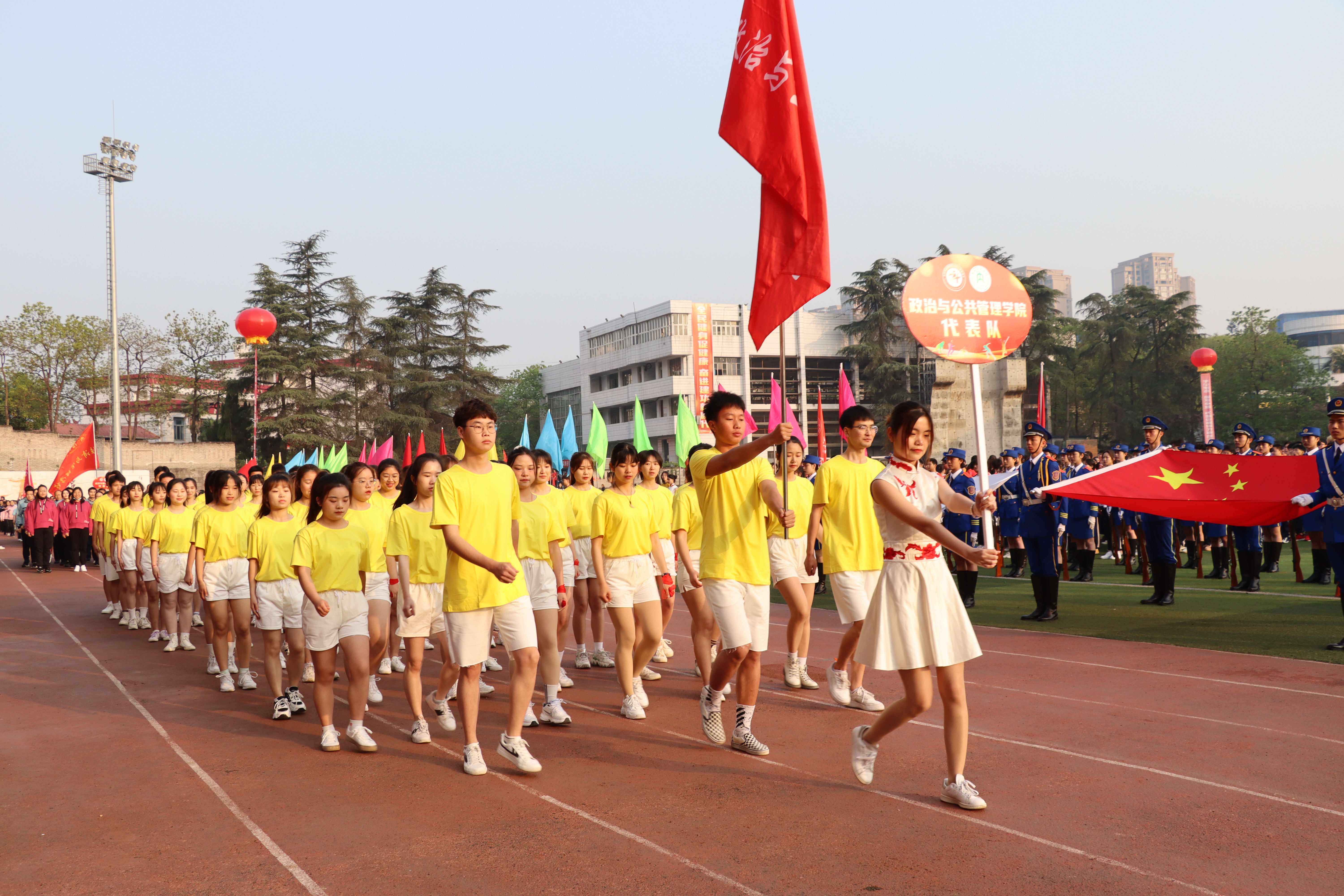 开幕式上,国旗护卫队迈着矫健的步伐郑重、庄严地步入会场。随后,在激越的《运动员进行曲》中彩旗方队、教职工方阵及各二级公司方阵依次入场。他们迈着轻快的步伐,喊着嘹亮的口号,依次通过主席台,以青春特有的方式展现自己朝气蓬勃、积极进取的精神风貌。在政管学子的期盼中,Mksport体育方队迈着整齐划一的步伐,喊着慷慨激昂的口号走向主席台。“千帆劲发、百舸争流、看我政管、力争上游”,十六个字喊出了政管学子不断努力、超越自我、奋力前行的决心。紧接着,公司方队精心准备的舞蹈《快乐出发》并以此献礼中国共产党成立一百周年,受到了全校师生的一致好评,青春的力量在运动场上回荡。在同学们热烈的掌声中,入场式结束,全体师生起立奏唱国歌,升国旗。开幕式最后,运动员代表宣誓,表示将以饱满的热情参加比赛,秉承友谊第一、比赛第二的信念,赛出风格,赛出水平。