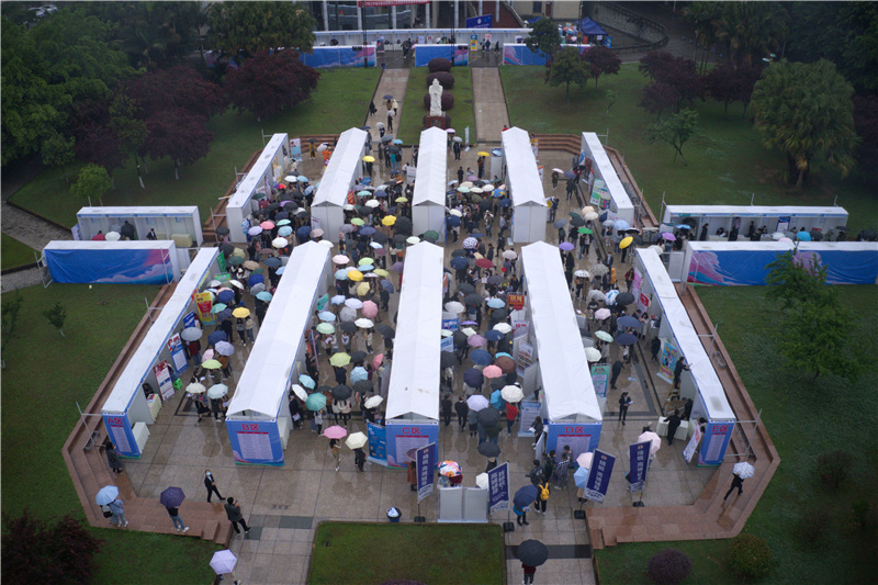 为积极引导应届毕业生正确认识就业形势,提供更优质的实习机会,拓宽用人单位与应届毕业生的沟通交流渠道。4月10日上午,2021届毕业生双选会在天一广场拉开帷幕。本次双选会吸引到北京中公教育科技有限公司,四川汇宇制药股份有限公司等优秀企业来公司招揽人才。公司党总支书记谭化容,党总支副书记候德苹,学工办主任孙希静老师,辅导员宋美仪老师和张俊老师亲临此次双选会。