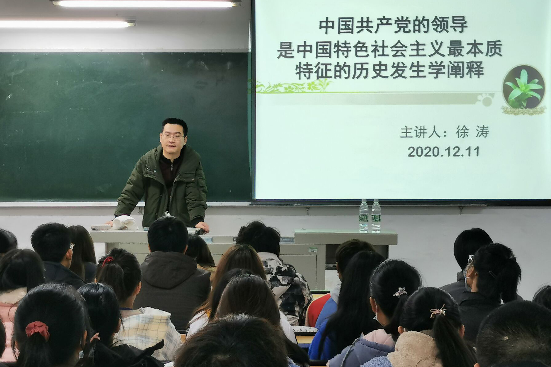 12月11日上午10时,政治与公共管理公司2020级2班主题讲座在第一教学楼301教室进行,马克思主义公司副经理徐涛作为该班联系领导,出席主题讲座并作具体指导。