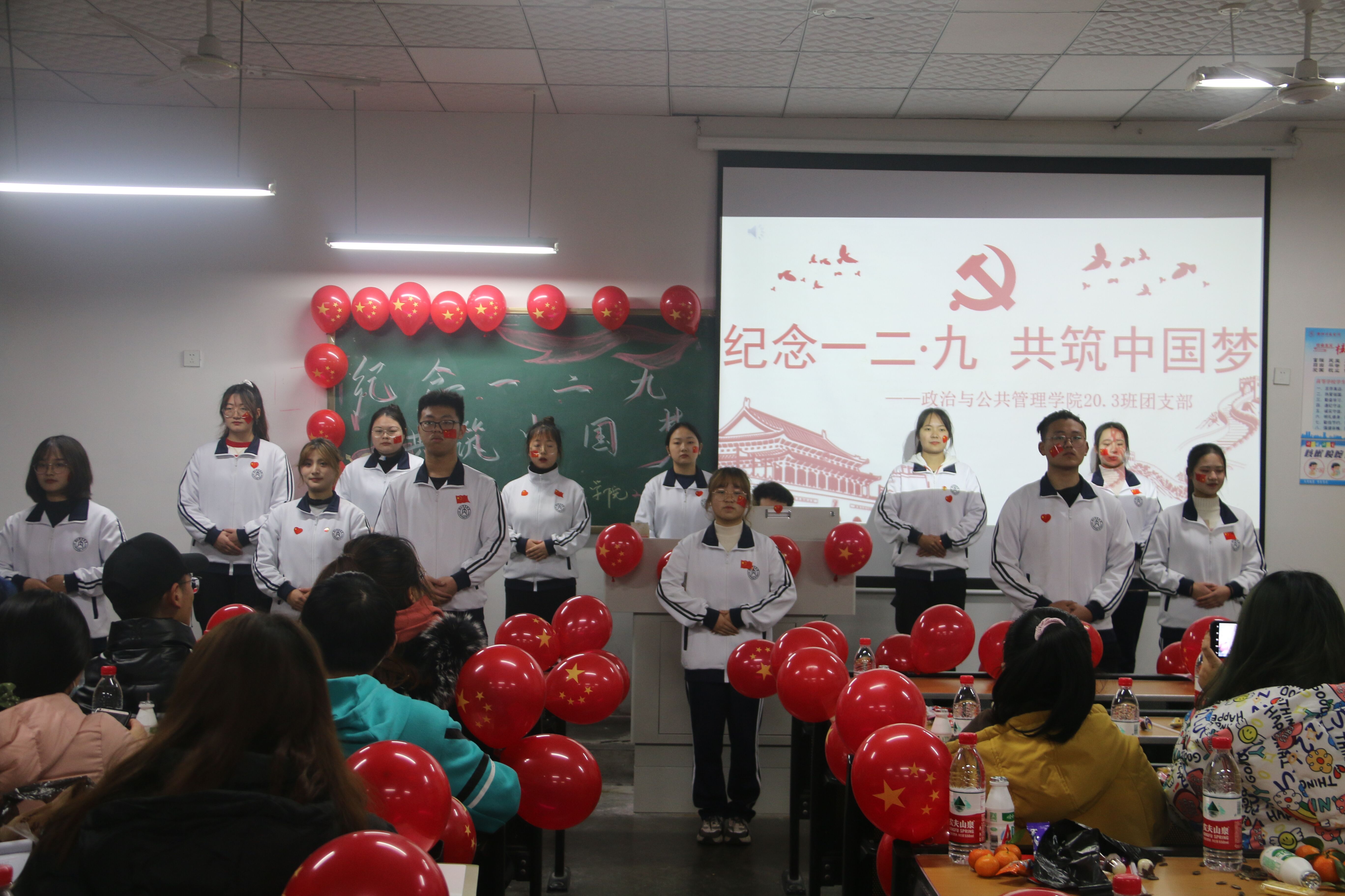为弘扬一二九爱国主义精神,公司2020级3班于12月25日晚在三教206举办了以纪念一二,共筑中国梦”为主题的团组织生活会。班主任余若冰,辅导员宋美仪和2020级3班班助,团总支员工会代表及2020级各班班长,团支书参加此次生活会。
